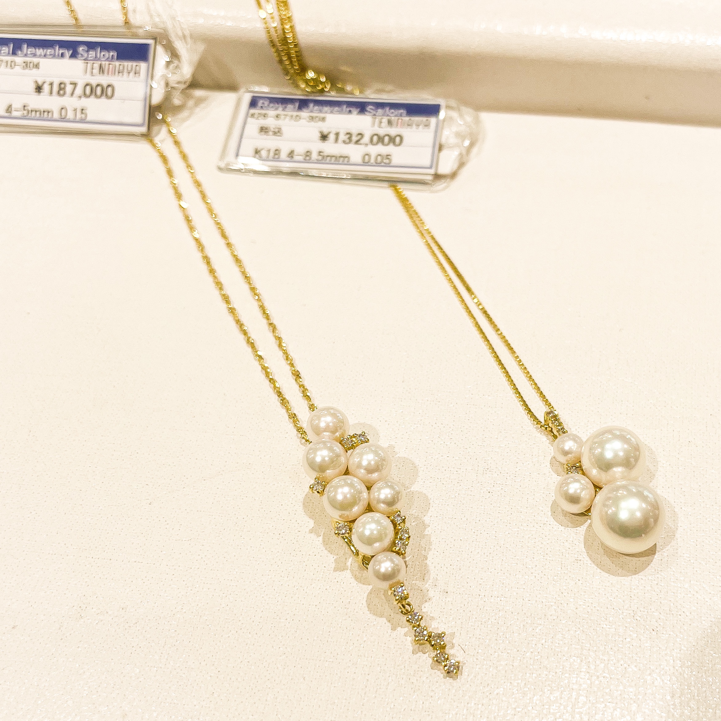 パールペンダント② 2022年1月7日 by ijima K18 あこやパールペンダント 一粒のパールペンダントは既にお持ちのお客様で、個性的なデザインをお探しの方にピッタリの新作あこや真珠ペンダント。 大小のアコヤ真珠をランダムに組み合わせた動きのあるデザインは、きっと注目のまと。
