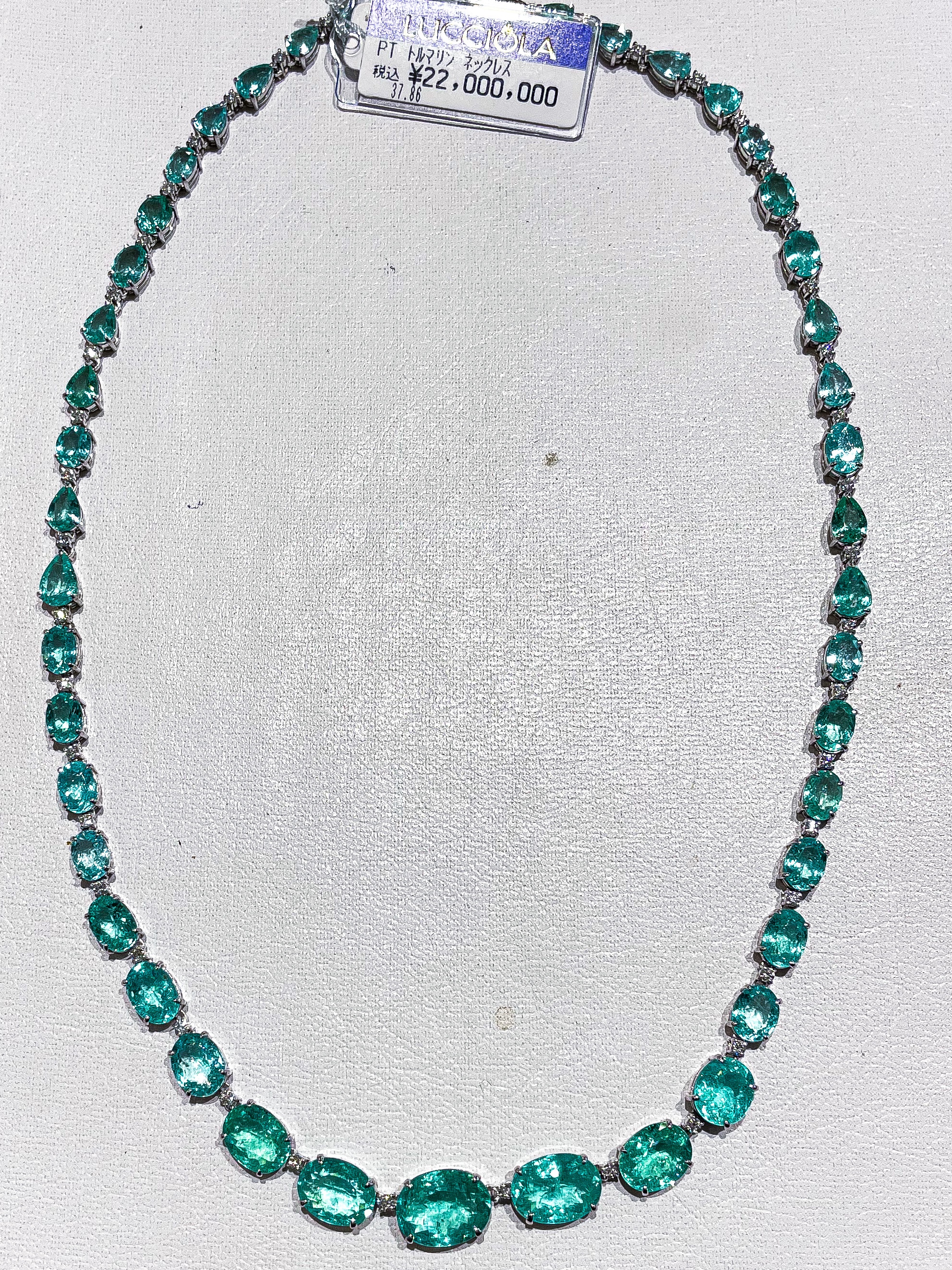 パライバトルマリン全周ネックレス 2022年1月19日 by ijima パライバトルマリン全周ネックレス いったい、どれだけの希少なパライバトルマリンの中から同色のサイズ違いを左右対称に揃えたのか? 日本の業者では集める自信はないですね。全周ネックレスはイヤリングを作る手間の30倍は難しい。 左右対称のペア石を相当数、揃えなければなりません。 2200万円の価格が高いと思った方は、一度、石だけでも揃えてみてください。今の相場では、不可能ですね。