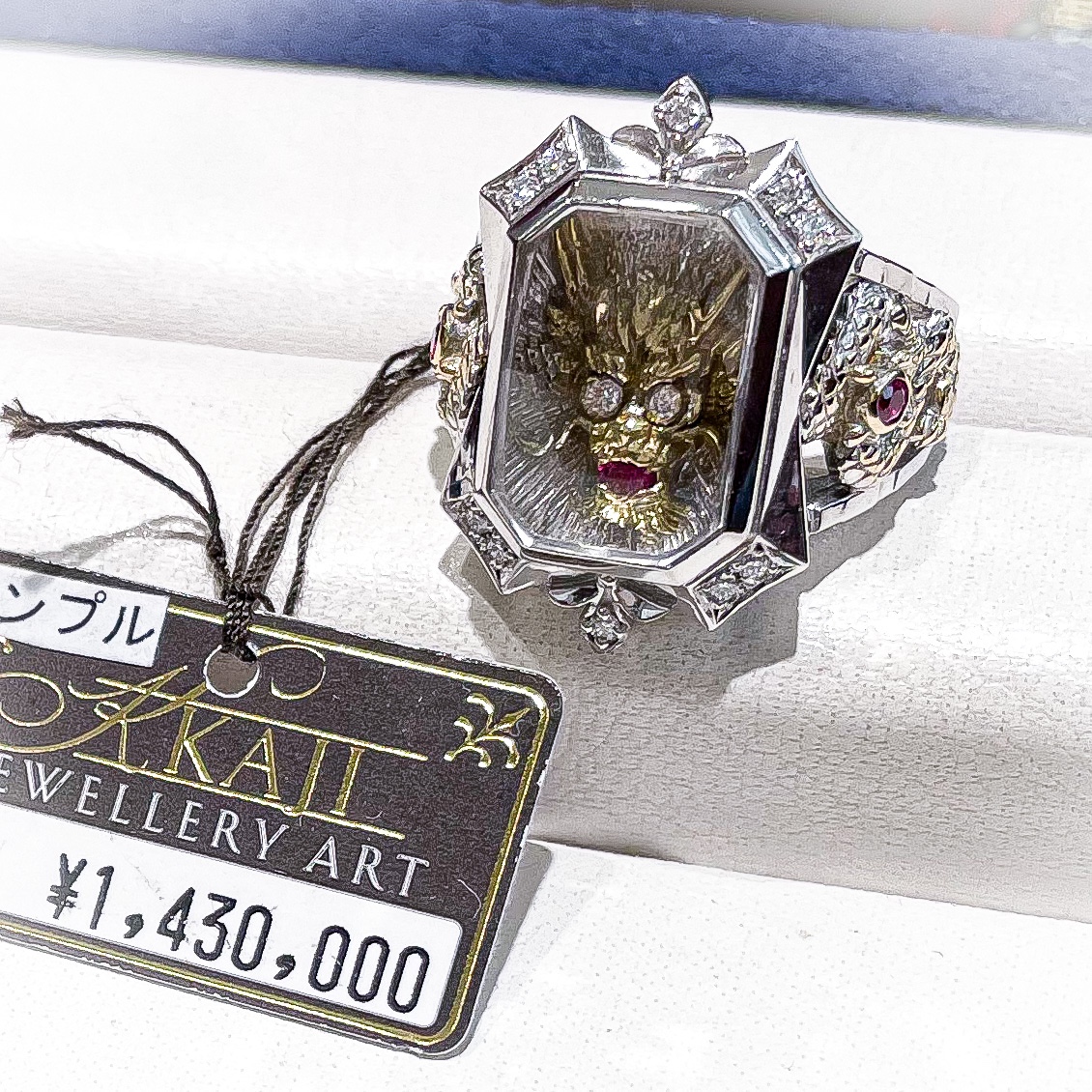梶光夫ジュエリー 龍リング 2022年2月11日 by ijima 梶光夫ジュエリー ドラゴンリング 梶光夫ジュエリー 龍リング 梶光夫ジュエリー 龍リング 龍をモチーフにしたアクセサリーは人気がありよく見かけますが、このジュエリーは龍の正面顔をクリスタルガラスの中に閉じ込め額装をしたデザインになっています。リングの側面部にも龍の鱗や尾鰭など細工してあり、男性でも女性でも楽しめるジュエリーですね。