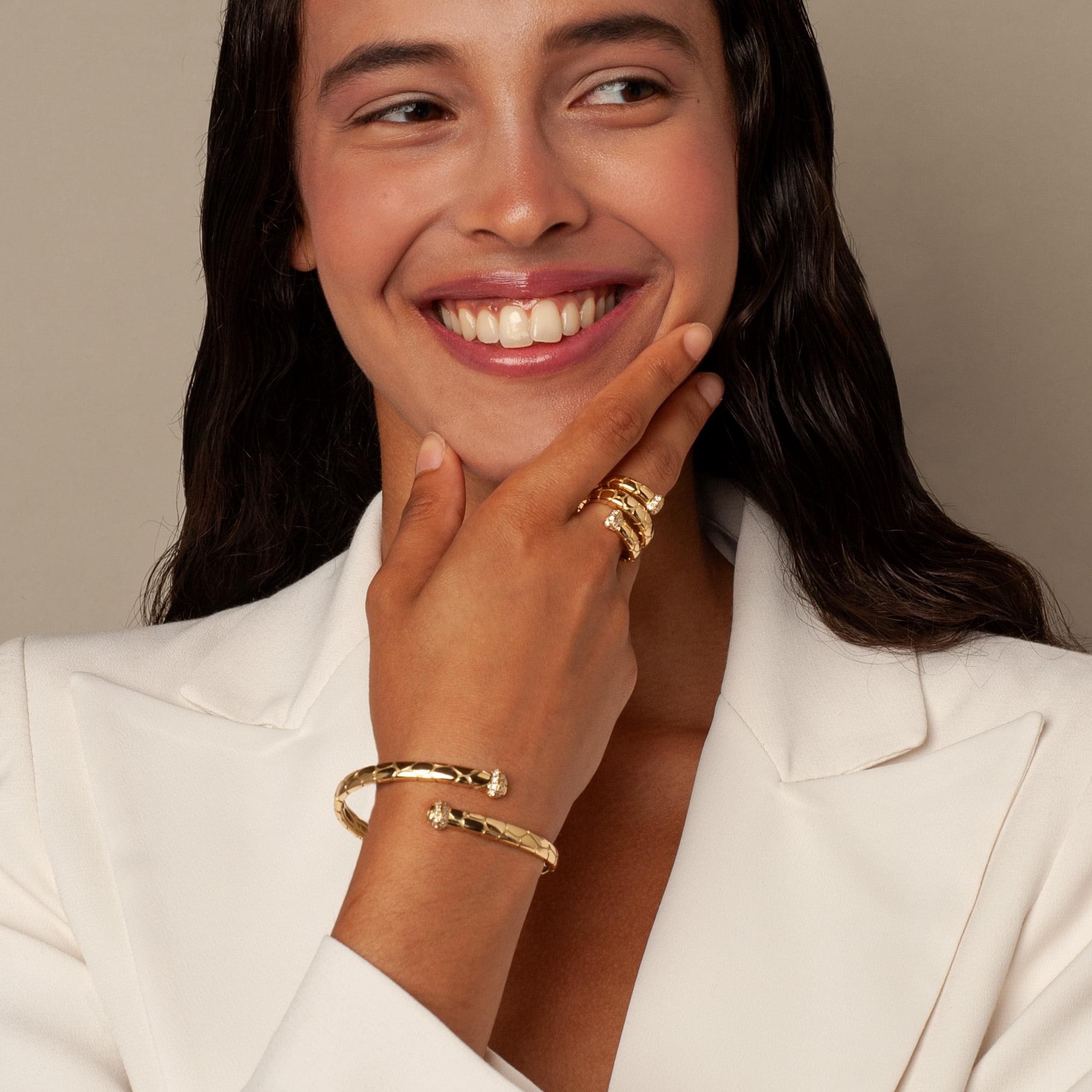 クロコダイルの模様を丁寧に打ち込み、重厚なハイジュエリー。