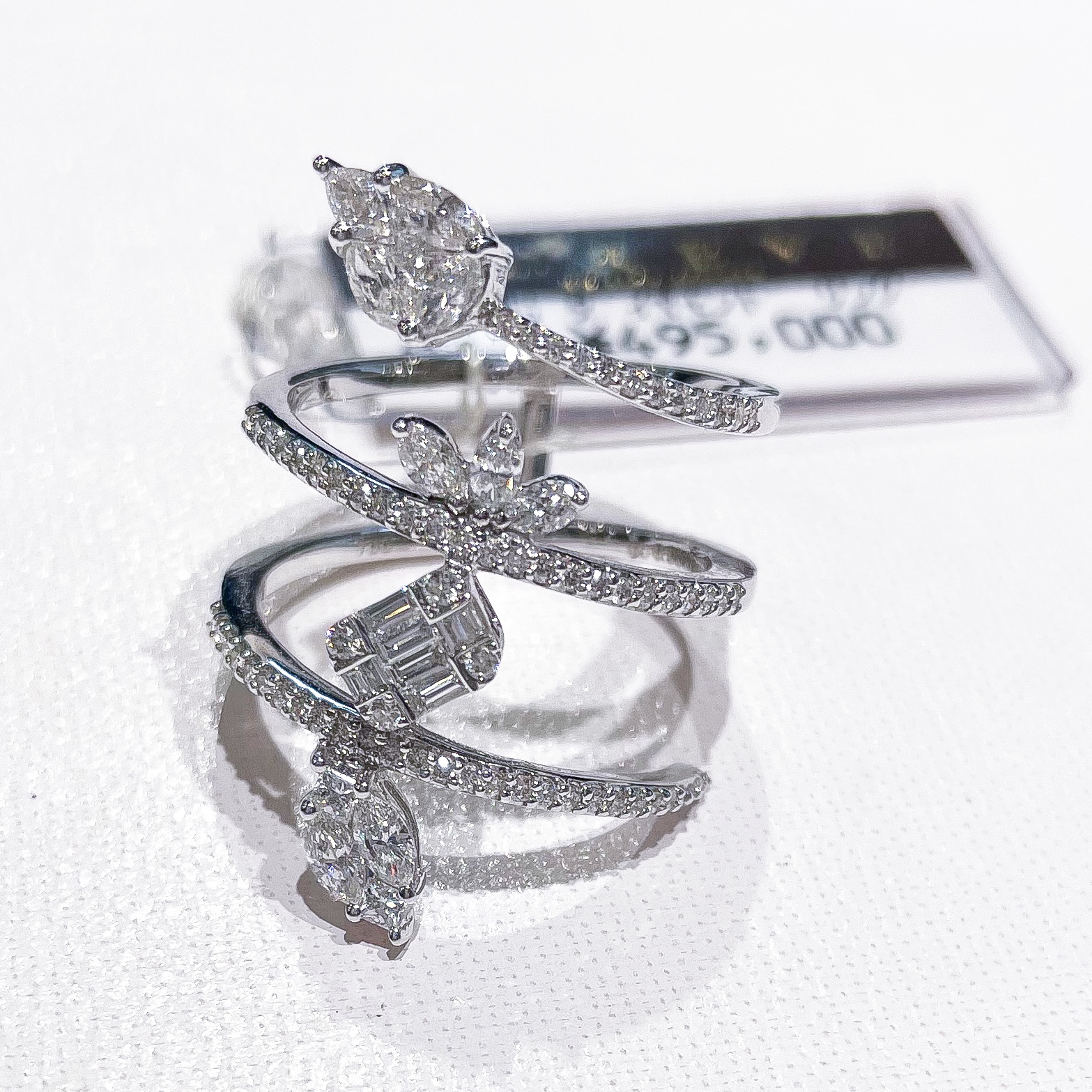 エクレブ ダイヤモンドリング⑥ 2022年6月7日 by ijima 3重に指に巻くように装着するリング ダイヤモンドを組み合わせてペアシェープやスクエアカットのダイヤモンドに見えるように石止めされたエクレブの得意技法をふんだんに使っています。 人差し指に使うと親指側から見た手がステキです。 このデザインは他では類を見ないので、売れ筋の商品ラインです。