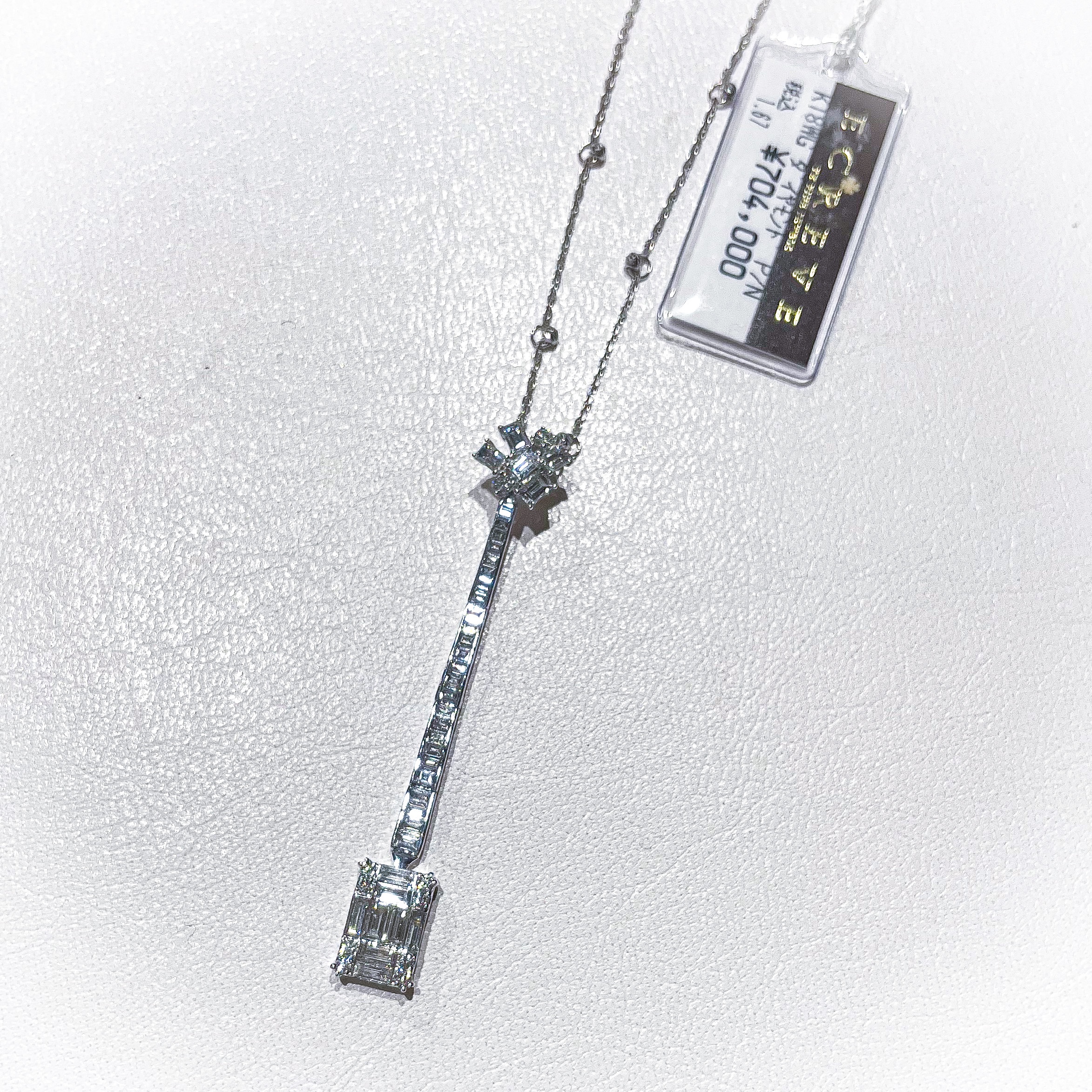 エクレブ ダイヤモンドペンダント② 2022年6月10日 by ijima バケットダイヤモンドやスクエアダイヤモンドなど角型のダイヤモンドを合わせて製作した高級感あふれるデザイン。 少し長めのチェーンで胸元の下あたりのペンダントとして使ってほしい。 長めのラインのスクエアダイヤ部分も揺れ動くので、女性らしさがアップしそう。