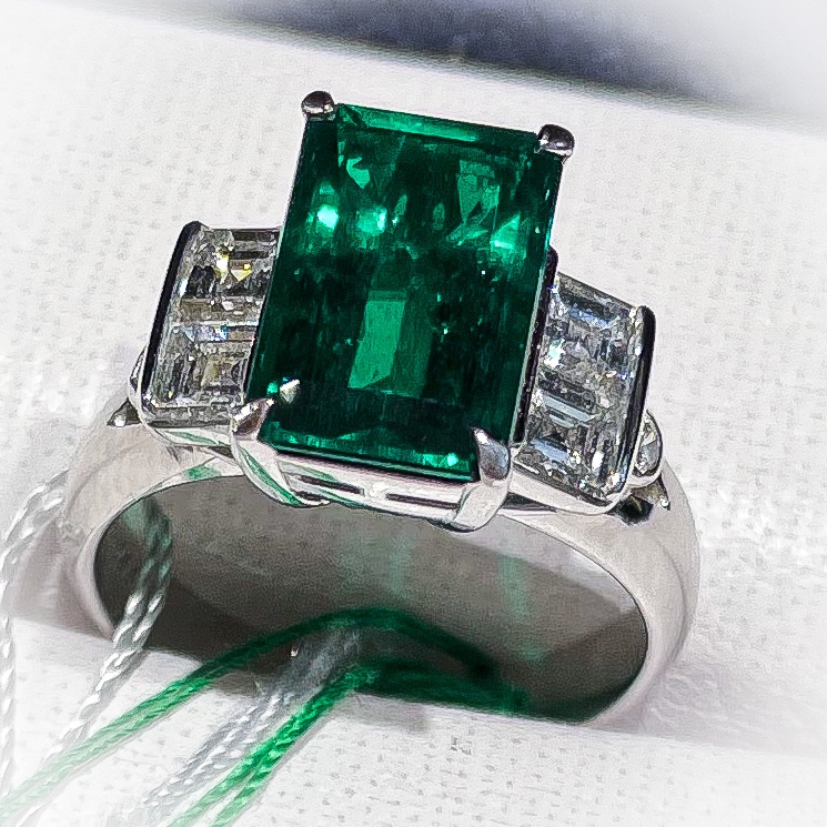 エメラルド① 2022年6月21日 by ijima コロンビア ムゾー鉱山産 エメラルド エメラルドの最高とされる産地は、時代が変わってもコロンビア産です。 中でもムゾー鉱山で採掘されるエメラルドは、深みと照り、色の強さを兼ね備えたグリーンで、1番人気もあり高値で入札されます。 またエメラルドは、緑柱石といわれる結晶のため、柱のように形成されるため、角型のエメラルドカットと呼ばれる一般的な形が、人気もあり、高額です。 中でも人気なものが写真のエメラルドのような少し縦の比率が長い長方形のエメラルド。 中石 2、88ctの最高品質のエメラルドです。