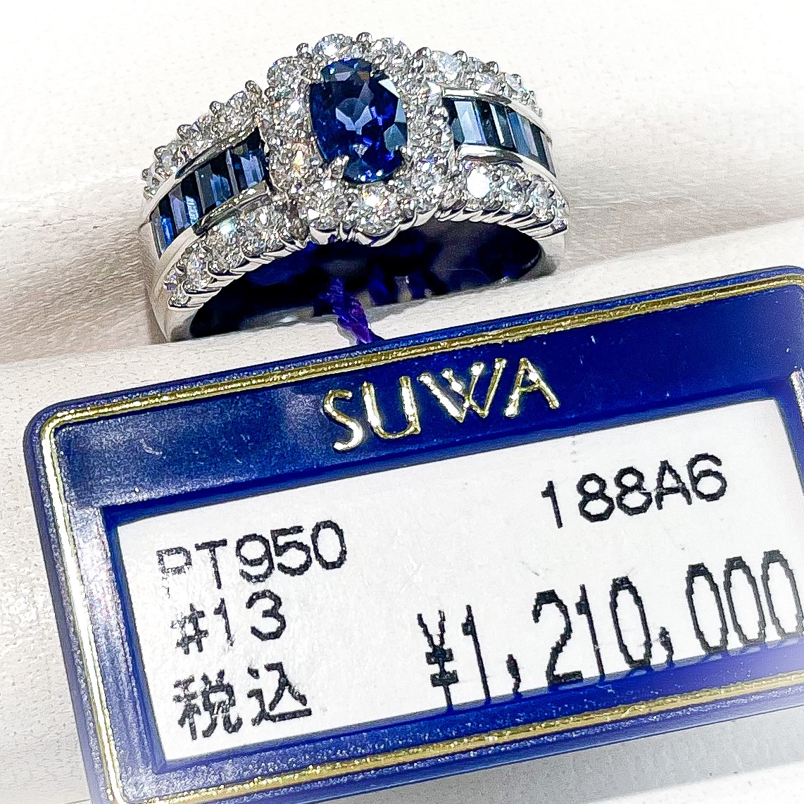 SUWA サファイアリング 2022年7月9日 by ijima ブログをご覧いただいた方のみにお届けするお買い得ジュエリー。 今回掲載のジュエリーも「SUWAジュエリー」30%OFFです。 PT950/ S:1.30ct D:0.80ct オーダー不可