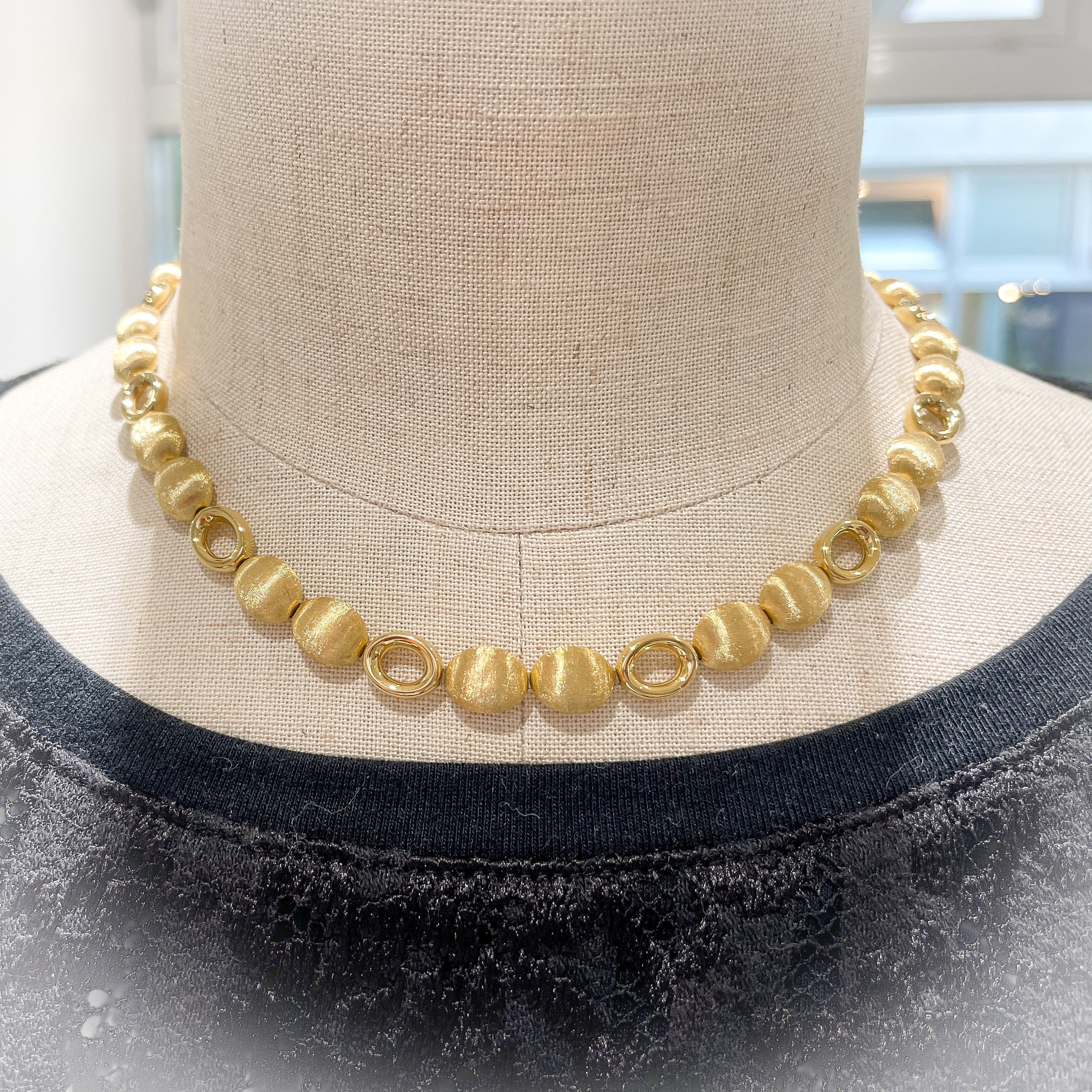 ナニスお買い得品② 2022年7月28日 by ijima 丸い珠は微妙に変形していて、針で掘ったような艶消しの加工がされていて、中空のために軽く作られている。 旧定価 781,000円 30% OFF