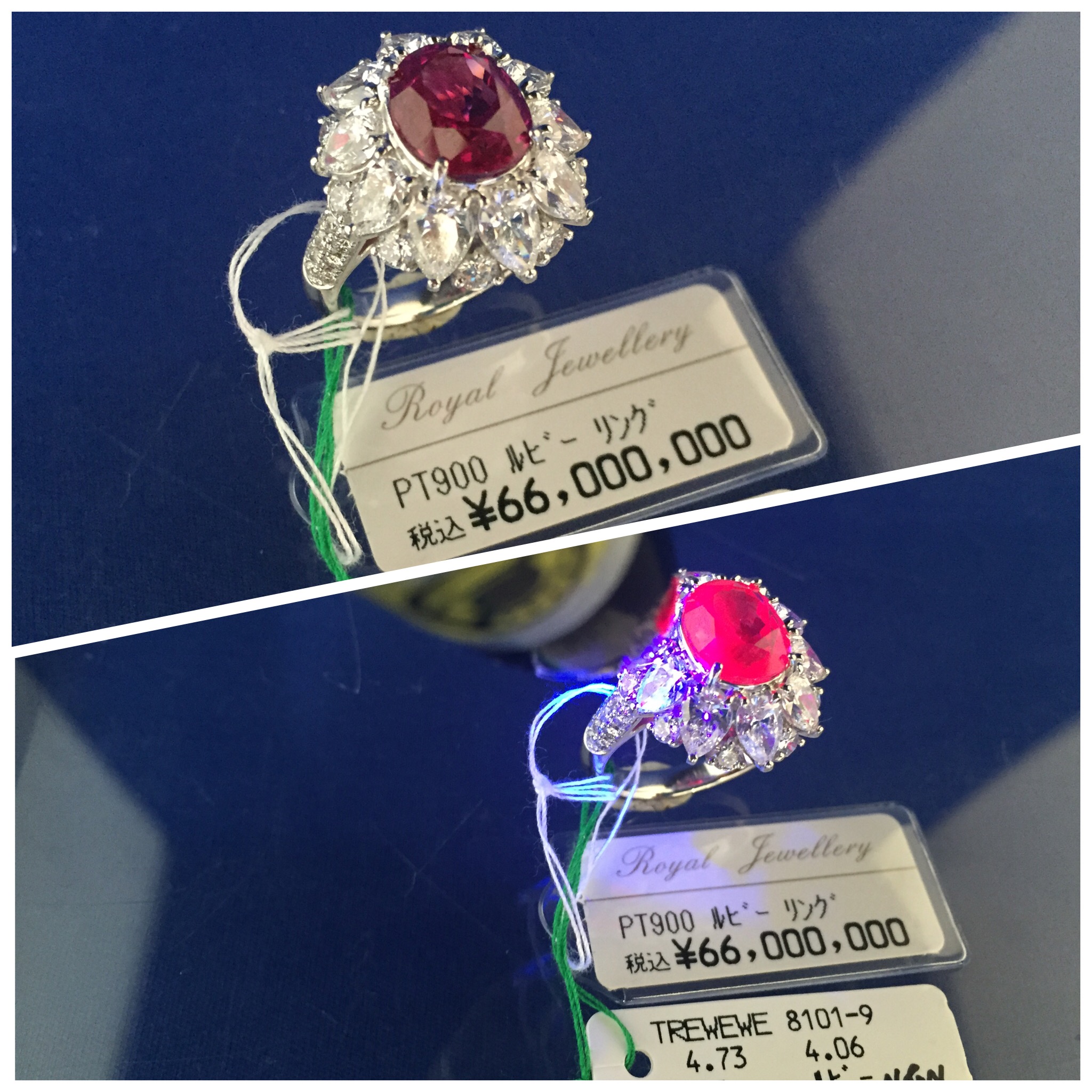 ミャンマー産 ルビー 2015年9月19日 by ijima 天然無処理 ミャンマー産(ビルマ産)ルビーです。通常、ルビーは1300℃〜1600℃の高熱で4時間から丸2日くらい時間をかけて、焼きます。黒味を帯びたルビーが明るく綺麗な赤に変化するのです。 しかし、なかには、採れたまま、美しいルビーも1万個に1個あるんです。 黒味を帯びる成分は鉄分です。鉄分を含まないルビーは、ブラックライトで、真っ赤に変化します。 これは、高品質のルビーの見分けのポイントです。