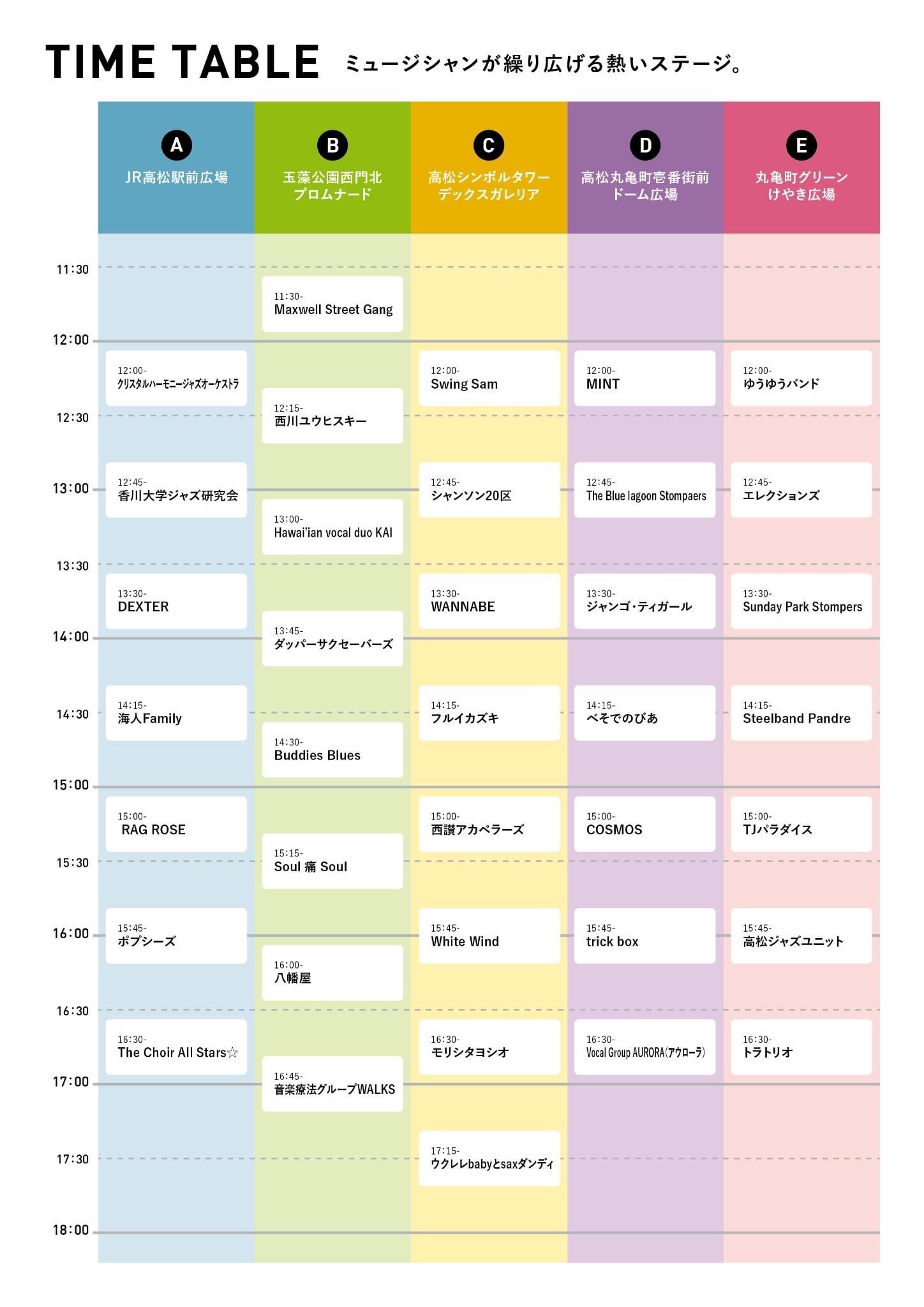 Music Blue Fes 出演 2016年7月27日 by ijima 平井卓也先生、率いるElections2022 2022年7月30日土曜日 12時45分から「丸亀町グリーンけやき広場」にて、Elections で演奏参加します。 Music Blue Fes は、地元ミュージシャンが高松の街の各ステージで熱く繰り広げるイベントです。 朝11:30〜18:00まで街中の五会場で37組の地元ミュージシャンが参加します。 タイムスケジュールは以下。 是非、お楽しみください!