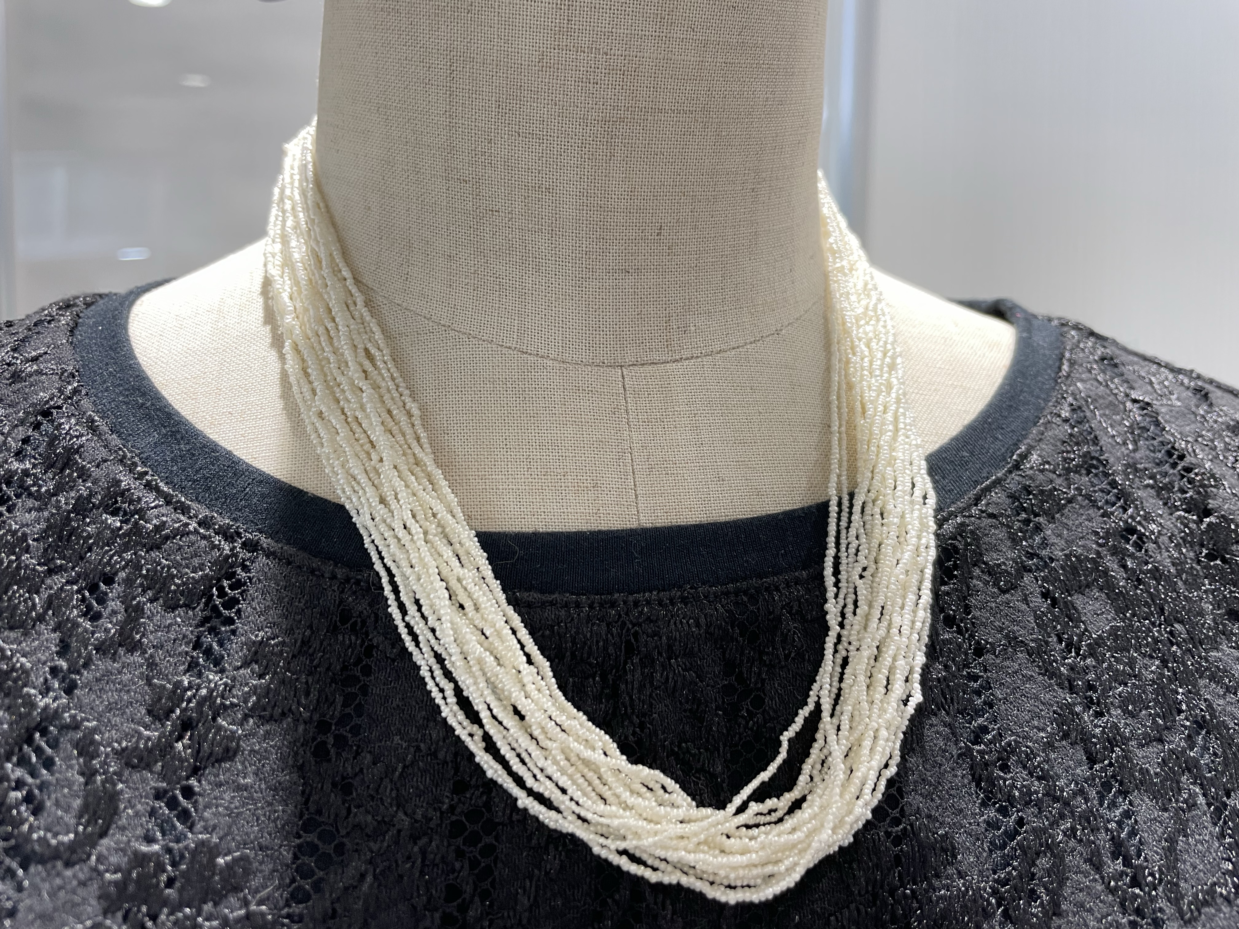 ケシパール(アコヤ) 2022年8月26日 by ijima アコヤ貝 ケシパール アコヤ貝から真珠を採取する際に貝殻の中に自然に出来上がった芥子の種に似た小さな小さな天然の無核真珠が、非常に希ですが見つかります。 その希少な天然無核真珠の小さな小さな珠を集めて、穴あけをして、大きさや形、色別に細かく細分化して、糸で編み込まれたケシパールネックレスです。 明日から月末まで6日間は、ケシパールの素晴らしいジュエリーをご覧いただきます。