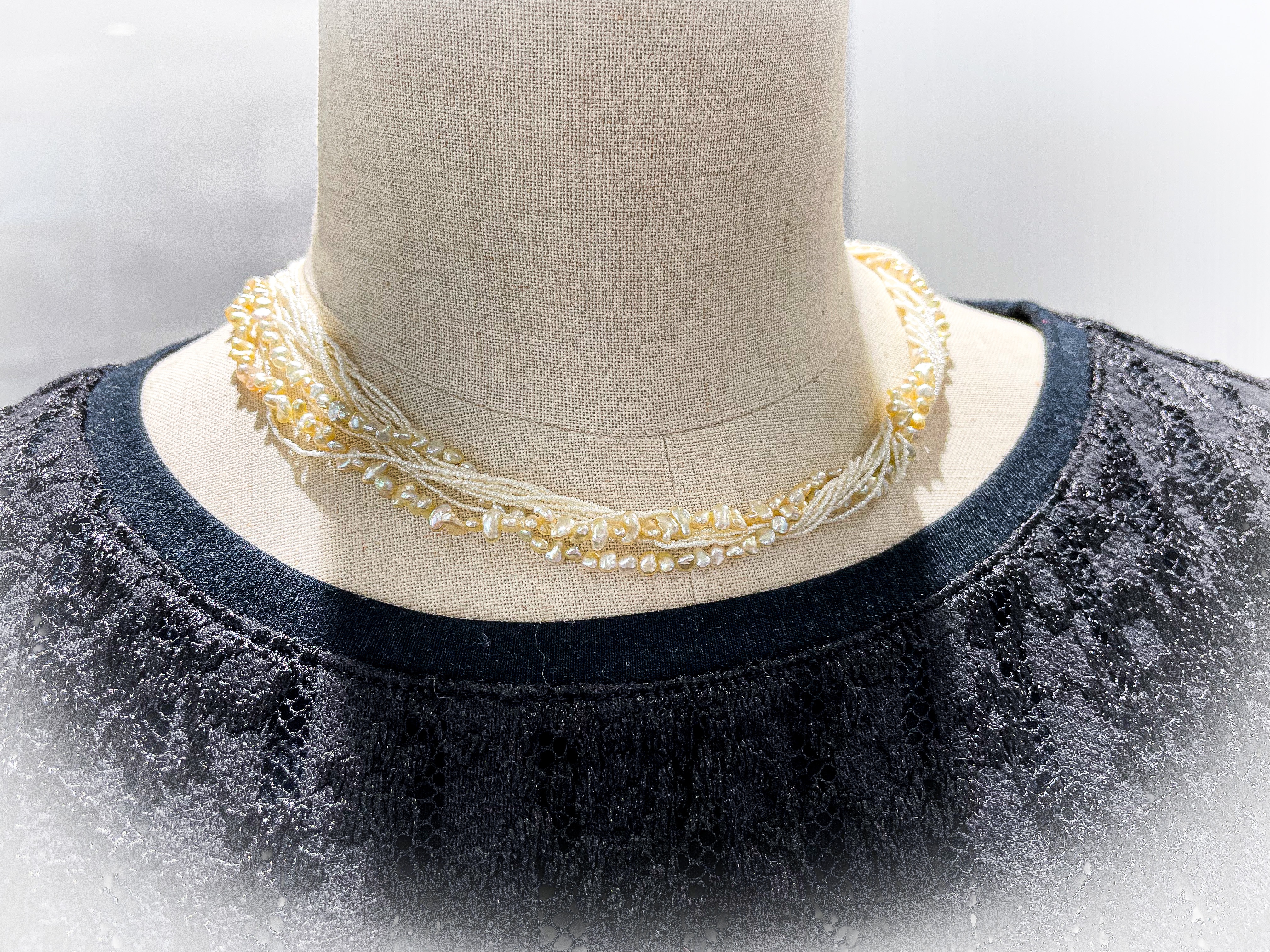 アコヤ貝 ケシパール2 2022年8月27日 by ijima アコヤ貝 ケシパールネックレス アコヤ貝から自然に無核で育成された真珠にはいろんな形や色があります。 小石や砂利のような形もあれば、お米のようなもの、真円で美しいもの・・・ 色味も、白はもちろん、グレー、イエローなど天然ならではの自由な真珠が見つかります。 それらをわざとに混ぜる事で新しい感覚のステキなジュエリーが完成します。