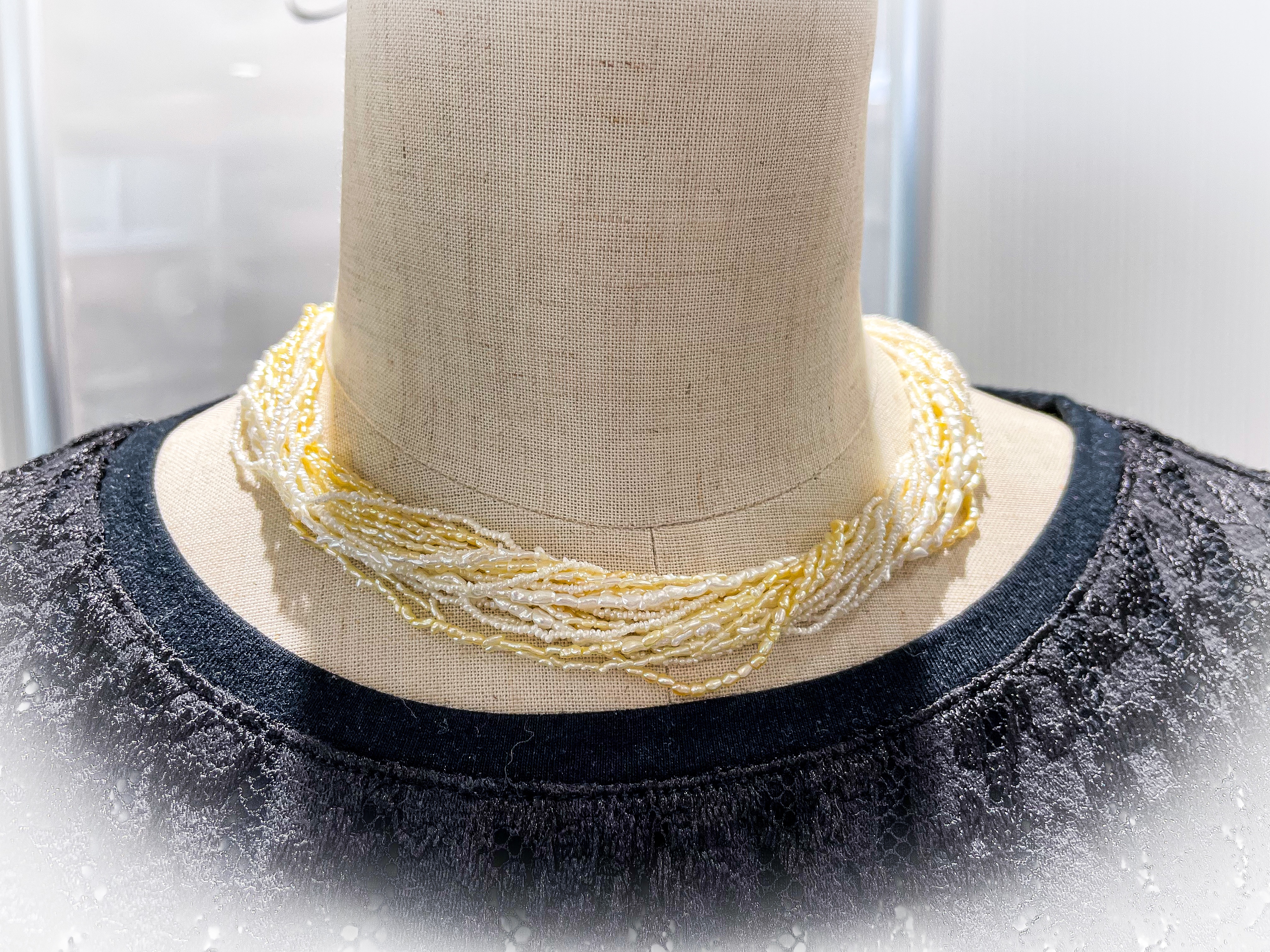 アコヤ貝 ケシパール3 2022年8月28日 by ijima アコヤ貝 ケシパールネックレス 少しアンティーク感のあるイエロー系のケシパールを混ぜる事でカジュアルで使える気楽でラフなアクセサリーになりました。