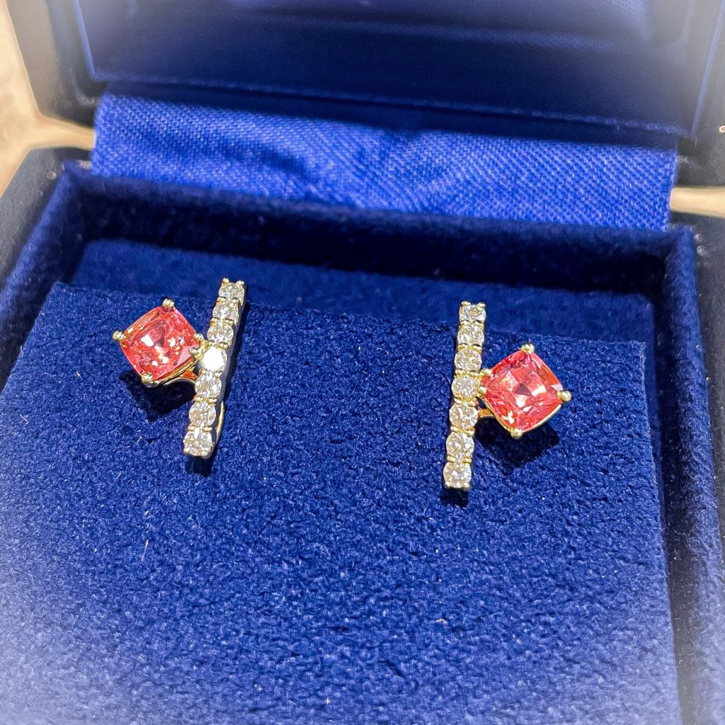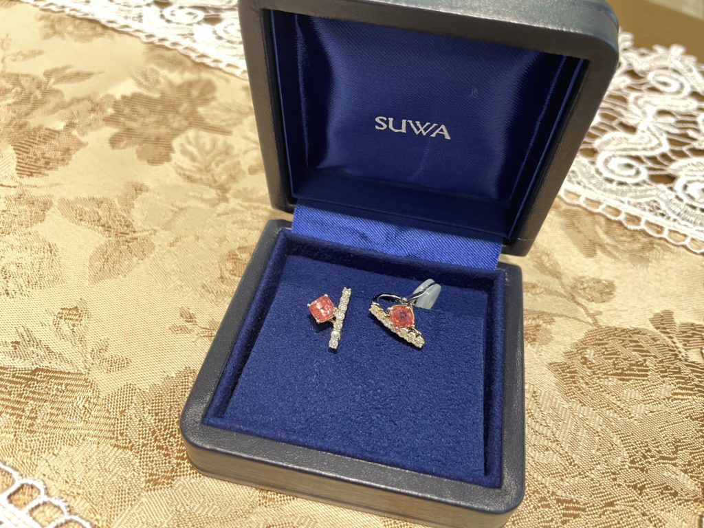 SUWA スピネルイヤリング 2022年9月3日 by ijima お客様のオーダー品でございます。 ホットピンクスピネルの裸石をお買い上げいただき、SUWAダイヤイヤリングにフレームをセットしました。 世界にひとつのオリジナルジュエリーです。 希少価値が高まってきたスピネルのペアをSUWAさんの定番のダイヤイヤリングに取り付けしました。