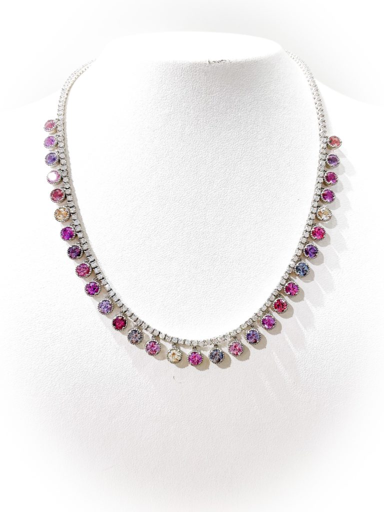 カラーサファイアネックレス 2022年10月4日 by ijima カラーサファイアネックレス PT ダイヤモンド全周ネックレスにカラーサファイアを色とりどりに吊り下げた、可愛いデザインネックレスが完成いたしました。 製作はもちろん手作業による完全手作り。 カラーサファイアは、11.360ct使用しました。 ダイヤモンド全周ネックレスは、5.290ct 価格は? お問合せくださいませ。
