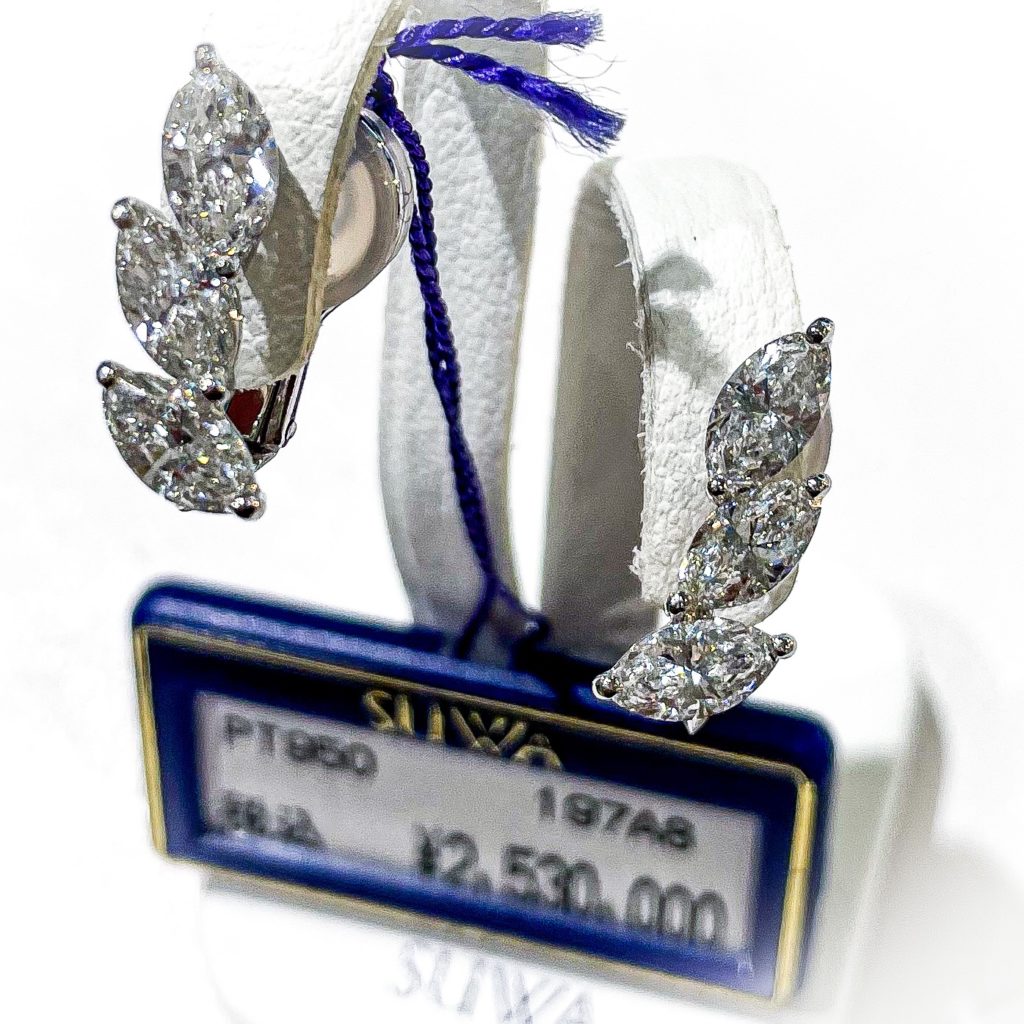 SUWA マーキス 2022年10月9日 by ijima 自然の葉を思わせる美しい輪郭を持つSUWAのマーキスカットダイヤモンド。そよ風に吹かれて木葉が舞うように表現されたエレガントなラインです。 今日もオンラインショップには掲載されていないオリジナルのイヤリングを紹介いたします。