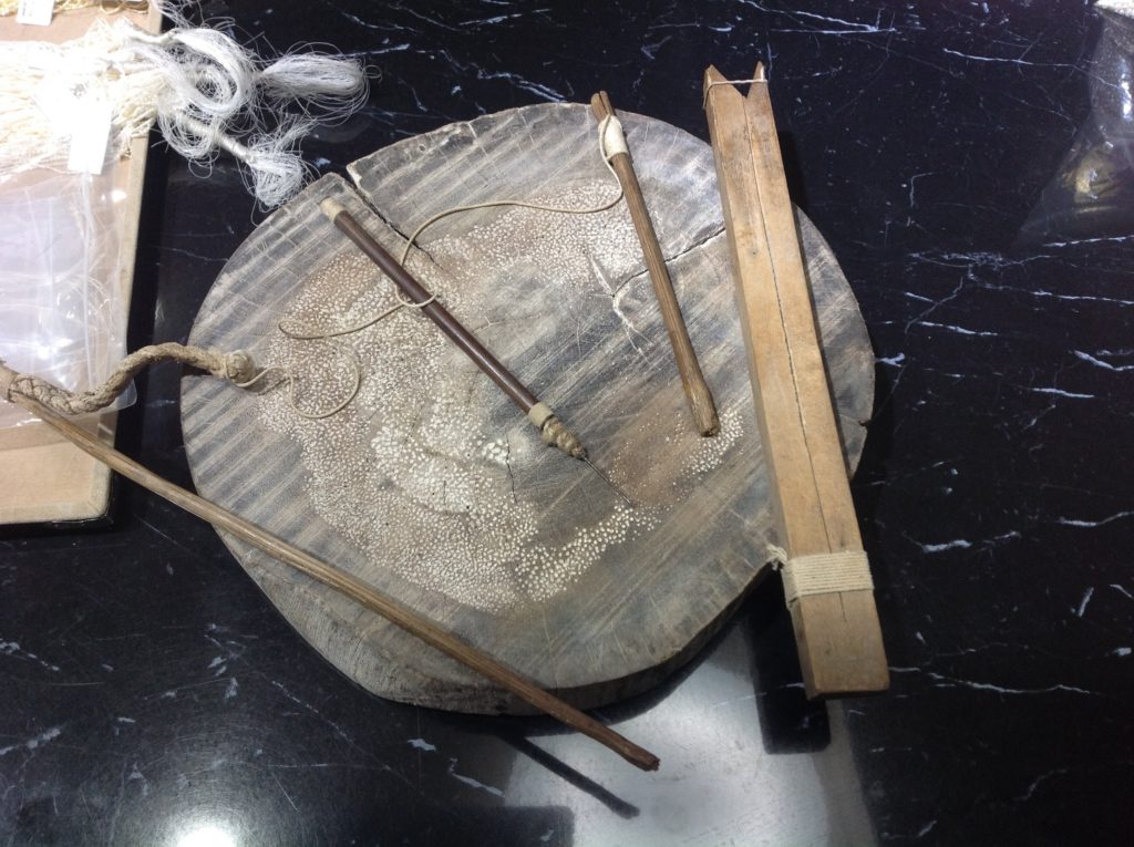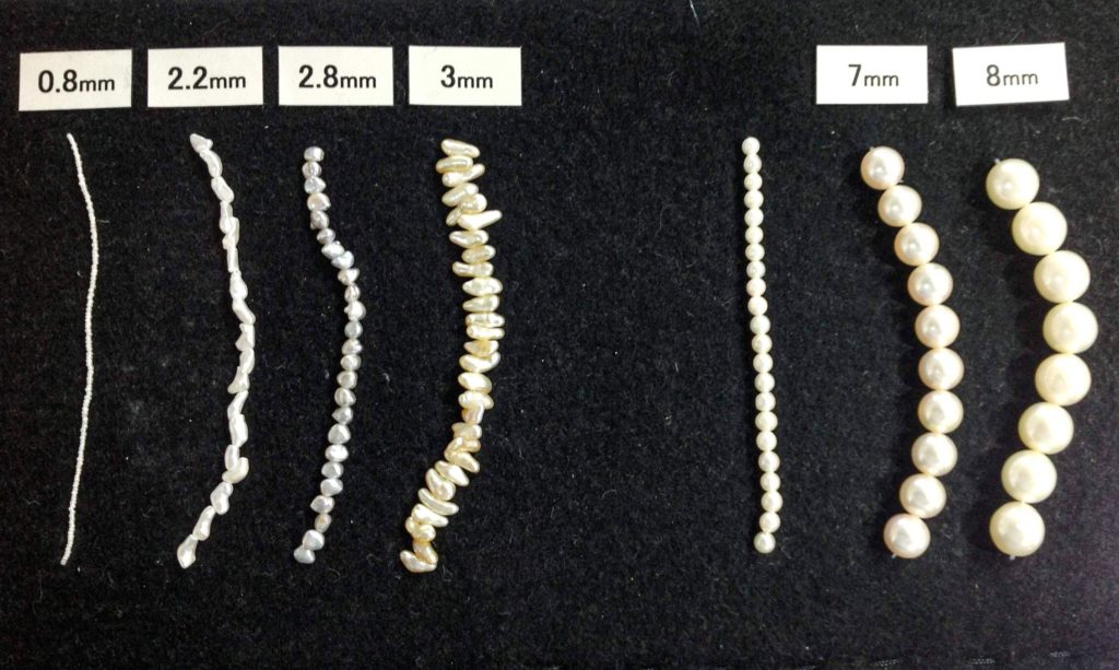 アコヤ無核真珠の穴あけ作業 2022年11月6日 by ijima 無核真珠の形と大きさ 3mm以下の天然アコヤ貝無核真珠をネックレスとして製品化するには、まず穴あけをして糸を通さないといけません。 この作業は今でもインドの人の手作業で行われています。下の写真が穴を開ける道具です。 ケシ真珠の穴あけ道具 土台の木の板には無数の大きさや深さが違う穴が空いていて、その穴にピッタリ合う珠を一粒づつ落とし込みして、火おこしの槍のような道具で穴を開けるのです。 気が遠くなるような作業です。