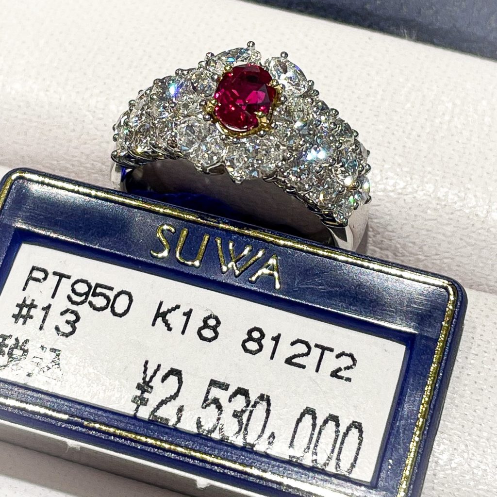 SUWA ルビーリング 2022年11月28日 by ijima SUWA ルビーリング ミャンマー モンスー鉱山のルビーです。 モンスーはミャンマーの中央部の都市・マンダレーの東に位置します。ルビーの産出で伝統のあるモゴック地方の南になります。 加熱処理がされていますが、モゴック産に劣らない、美しさがあります。 透明度も高く、輝きのある逸品です。モザイク模様がバランスよく出ていて炎のような赤色を感じさせます。 通常、インクルージョンが多いのが特徴なのですが、紹介した写真のルビーには、欠点が少なく大変美しいルビーです。