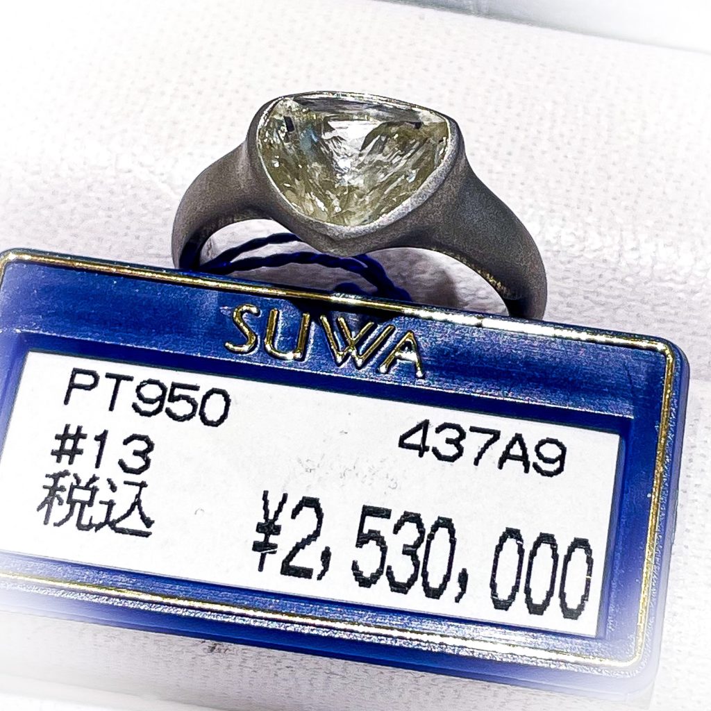 SUWA アンカットダイヤモンド② 2022年12月3日 by ijima 正八面体で地上に現れるダイヤモンドはごく僅かです。 マグマの熱で溶かされたり、川で流されて大自然に研磨されたりして、写真のようなメイカブルと言われる型で見つかるものが多い。 こちらのラフカット(原石のままアンカットで使用したダイヤ)ダイヤモンドは、ユニセックスでご使用いただけるデザインとなっております。 プラチナの梨地が落ち着きを演出しております。 ラフダイヤモンドは、2.21ctあります。