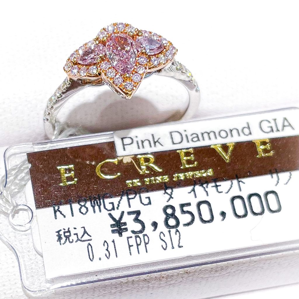 純粋なピンクダイヤモンドが高価なのですが、見た目は、こちらの方がより濃いピンク色に見えるため、人気が高く品薄です。