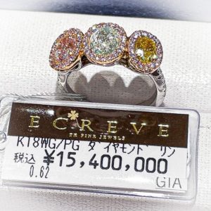 エクレブ クリスマス新作⑦ 2022年12月11日 by ijima ピンクダイヤモンド・グリーンダイヤモンド・イエローダイヤモンドの3色を並べて、ピンクダイヤモンドメレをそれぞれに取り巻きした高級感のあるリングです。 Fancy Vivid Yellow VVS2 Very Light Green I1 Fancy Light Parplish Pink. SI1 0、60ct超えの3ピースを一本のリングに作ってしまう贅沢さ。 取り巻きのピンクダイヤモンドのメレだけでも、見惚れてしまうほどの完成度の高さを感じます。