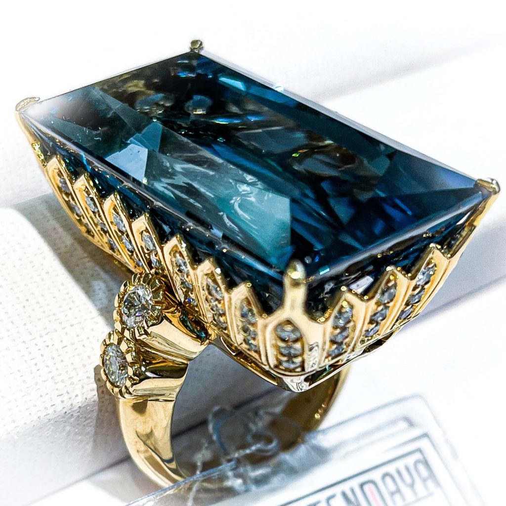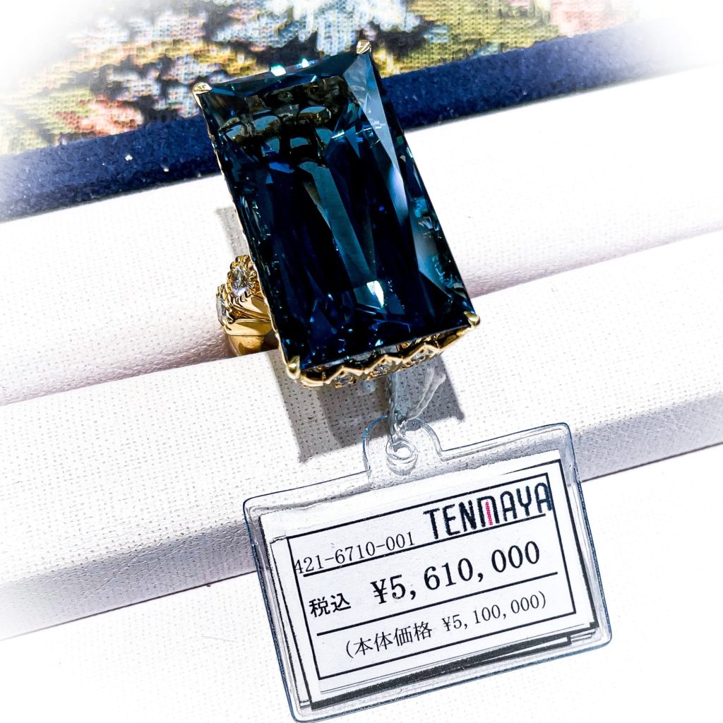 ブルートパーズ 2023年1月19日 by ijima ロシアンブルートパースと称される濃い色調のブルートパーズ。 名前はロシアンだが、産地はブラジルに限定される。 トパーズは、加熱によりブルーに可変するのですが、ここまで濃い色になるものは、非常に稀です。何より大きさが,66.880ctとスケール的に凄みがあります。 デザインも素晴らしく、よくぞこの大きさを指輪に加工したもんだと感心した。 内包物や欠点が無い、パーフェクトのブルートパーズ。