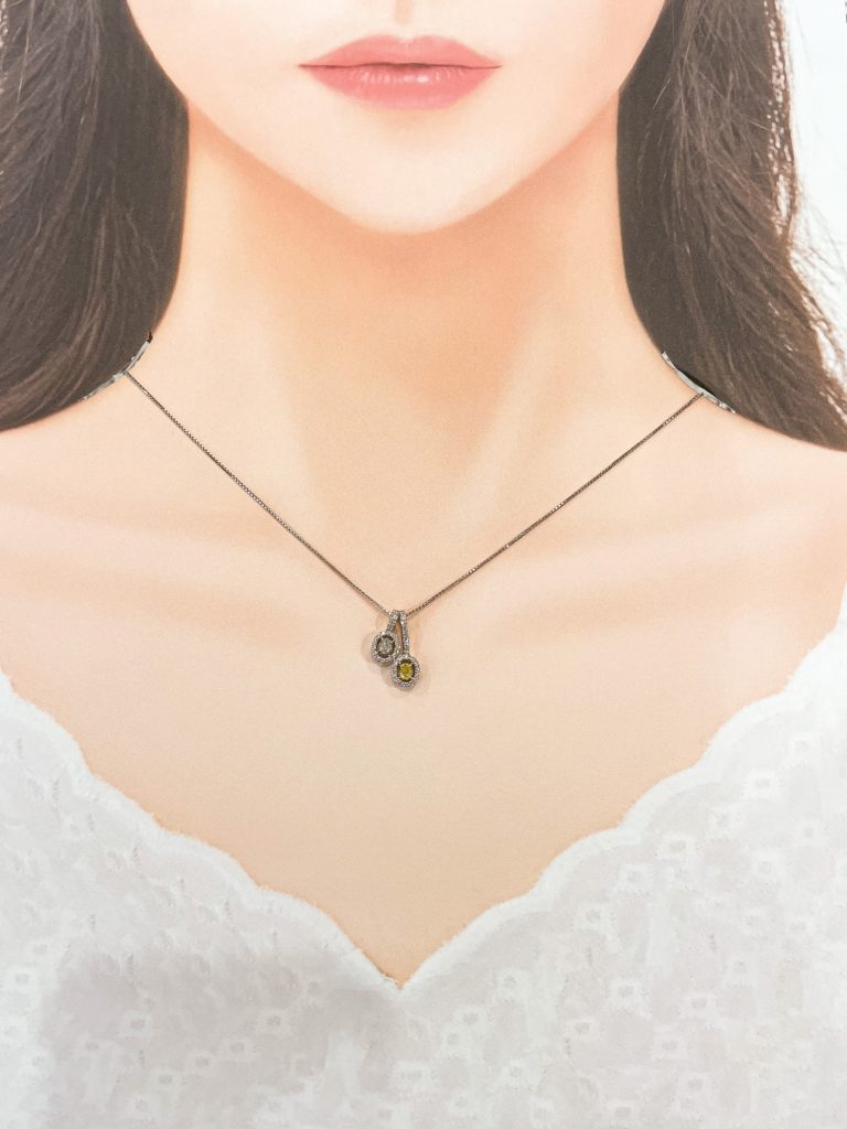 グリーンダイヤペンダント 2023年4月5日 by ijima プラチナ/K18 0.150ct ライトグリーン VS1 0.144ct ファンシーインテンスイエロー SI1 0.23ct メレダイヤモンド入り 税込 726,000円