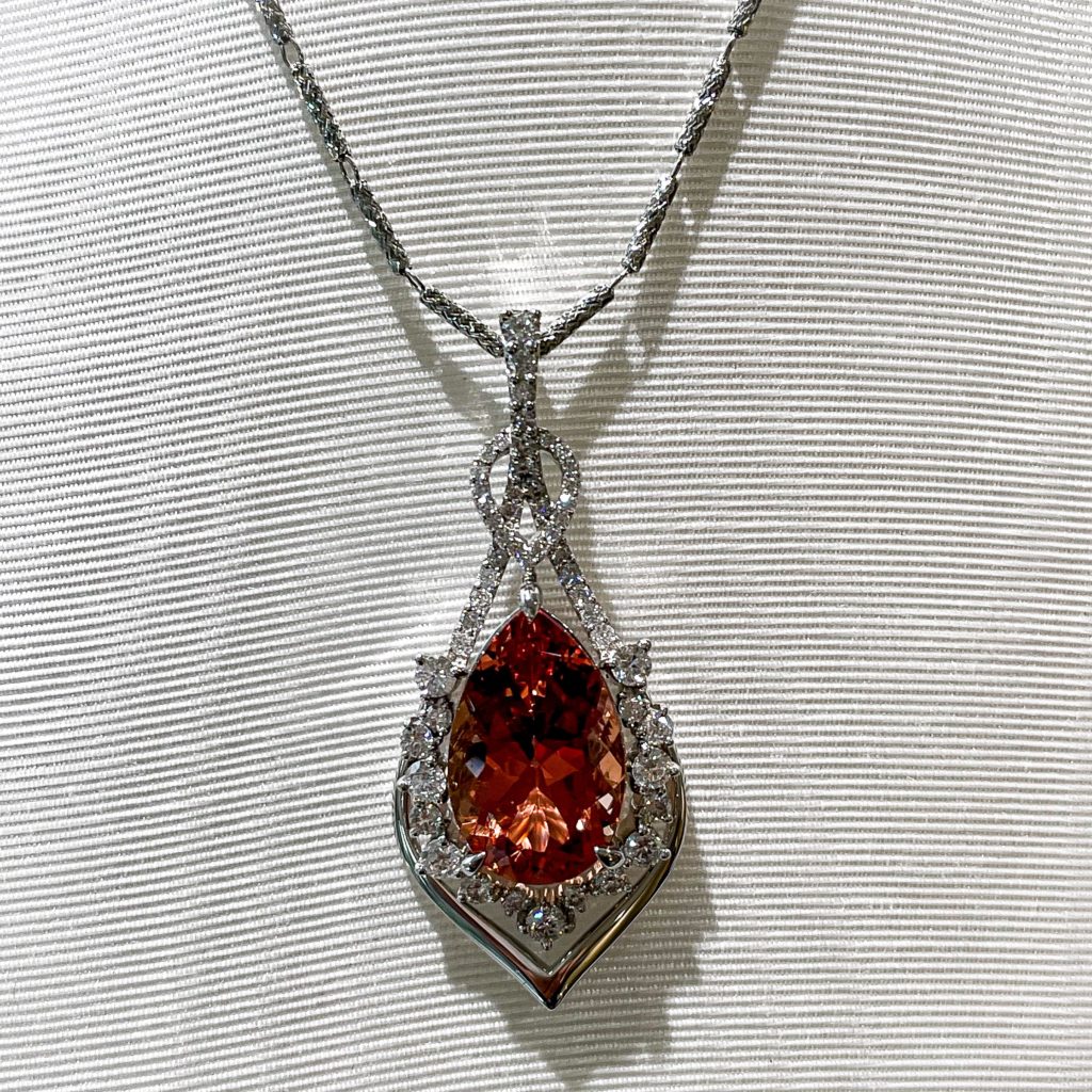 インペリアルトパーズ 2023年4月20日 by ijima 9ct インペリアルトパーズ 石の和名を「黄玉」という如く、コニャックイエローが標準ですが、シェリー酒のような赤みがかかった橙色は、コランダム鉱物のルビー同様、微量に混入したクロムが原因しています。 基本的にOHタイプ(水酸基)のこの石は、熱処理や照射処理を行いません。 10ct近い大きなサイズは希少で価値が高い為、大変高額になります。 1000万円を超える価格です。