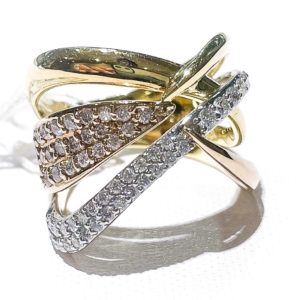 幅広リング7 2023年4月27日 by ijima Pt950/1000 K18 のコンビ K18は、イエローゴールドとピンクゴールドで、3色のトリコロールカラー。 0.78ct ダイヤモンド入り 396,000円税込は、ALL K18のファッションリングの半額程度かも・・・