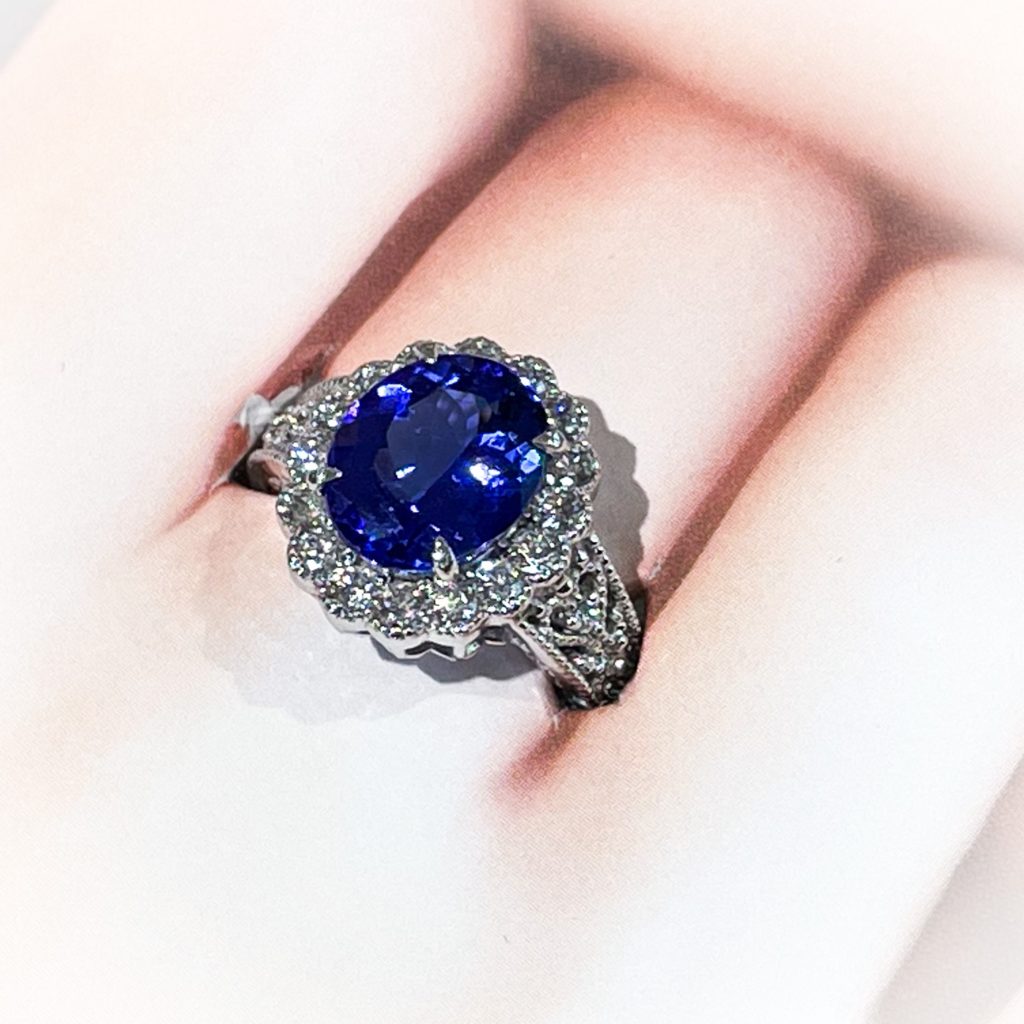 タンザナイトリング 2023年5月9日 by ijima 12月の誕生石として2002年米国宝石学協会(GIA)選定の誕生石に加わりました。 この石の最大の特徴は多色性です。自然光では鮮やかな青色に見え、白熱灯の下では深い青紫色に変化します。角度を変えて観ると鮮やかな紫赤色が見えます。 タンザナイト 3.600ct ダイヤモンド 0.680ct Pt900/1000 税込 70万円で販売致します。