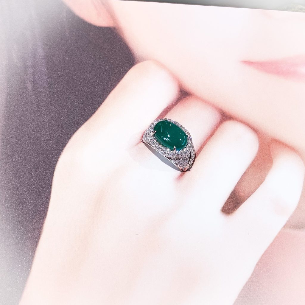 エメラルドカボションリング 2023年5月16日 by ijima エメラルドカボションカットは、不透明で濁りがあり内包物が多いのが通常で、私個人的にあまり好みの石ではありません。 しかし数年に一度、このような透明感があり、色だまりや内包物が目視できない鮮やかな緑のテリがあるカボションエメラルドの出会いがあります。 もちろん鑑定の結果、コロンビア産のエメラルドです。 エメラルド 5.811ct ダイヤモンド 1.470ct Pt900/1000 税込280万円です。