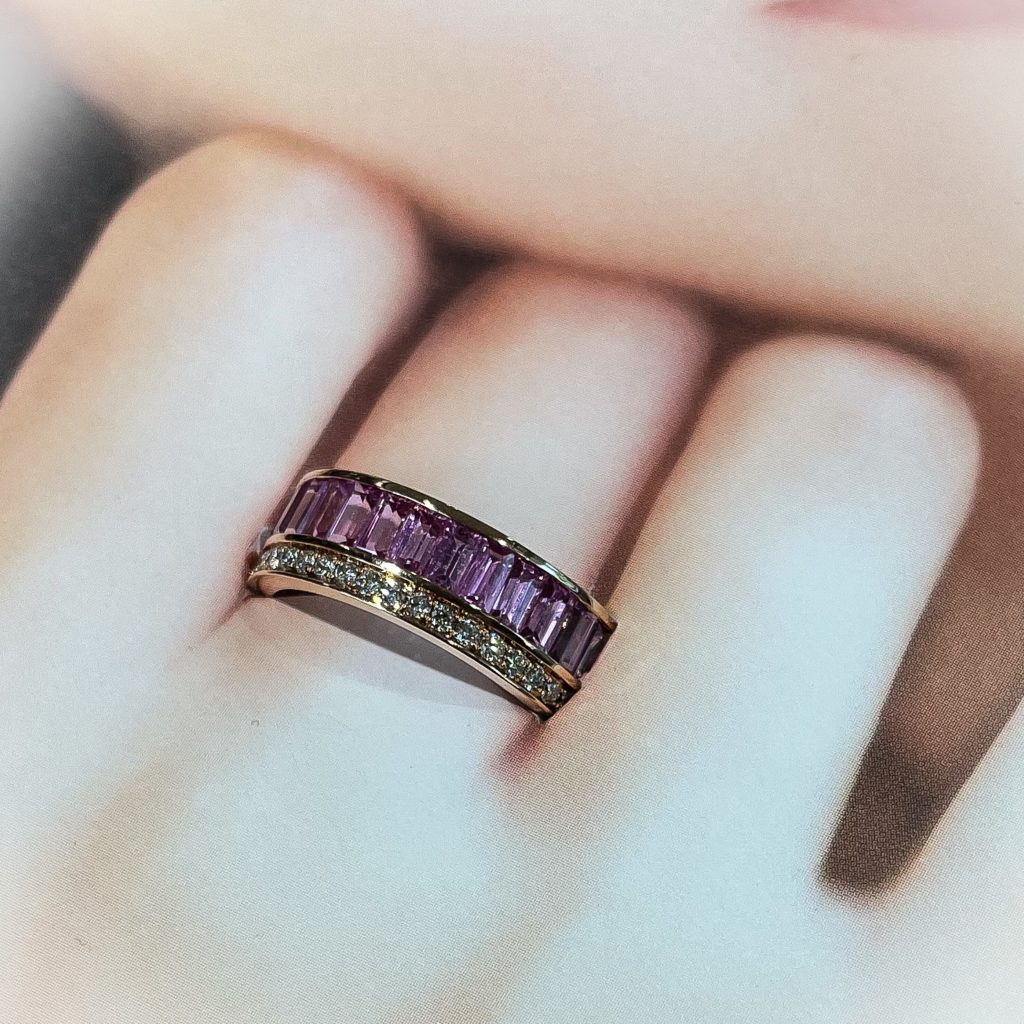 ピンクサファイアリング 2023年5月25日 by ijima K18ピンクゴールド で加工を施しました。 ピンクサファイヤのスクエアカットを石合わせをして、2.00ct 伏せこみ留めしています。 ダイヤモンド 0.30ct 税込 68万円 現品限り