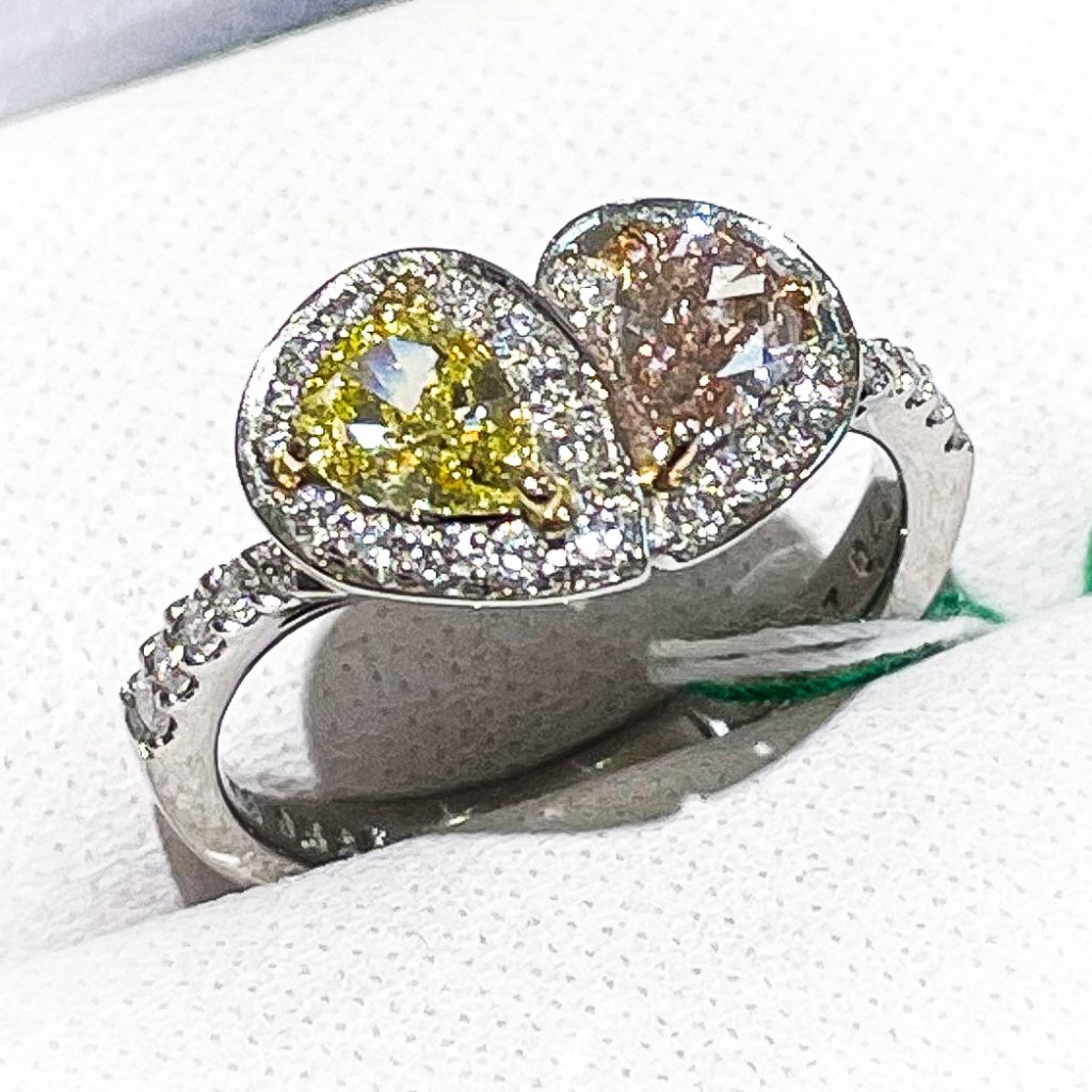 イエロー&ピンクダイヤモンド 2023年6月26日 by ijima 0.547ct FOP SI1/0.520ct FIY SI1 0.42 0.547ct ファンシーオレンジニッシュピンクダイヤモンド SI1 0.520ct ファンシーインテンスイエローダイヤモンド SI1 希少なダイヤモンドを贅沢に2ピース使用しました。 ペアシェープカットを2ピース合わせることでハート型に観えるようにデザインされています。 脇石は0.42ct 上代金額は 7,590,000円