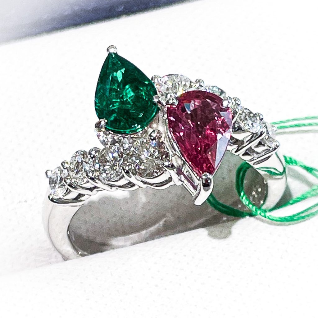 パパラチアサファイヤ& エメラルドリング 2023年7月2日 by ijima パパラチアサファイヤ&エメラルドリング 最高品質の希少宝石 エメラルドとパパラチアサファイヤを贅沢に一つのリングに完成しました。 エメラルドは 0.88ct パパラチアは 0.77ct どちらも同じ大きさのペアシェープカットで揃えています。 腕に大きめのメレダイヤモンドを0.67ct使用してシンプルですが豪華に贅沢に仕上がりました。 価格は 300万円でご奉仕いたします。