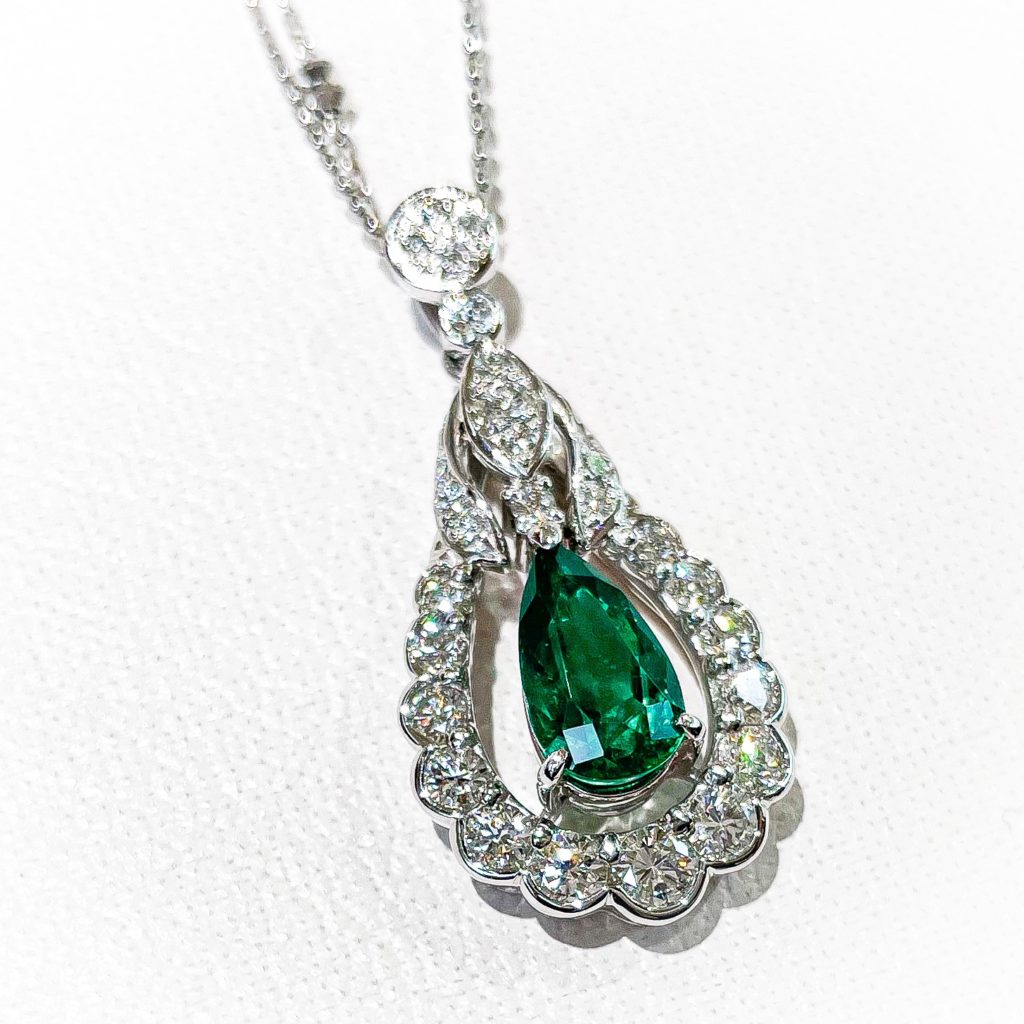 エメラルドペンダント 2023年7月20日 by ijima コロンビア産 エメラルドペンダント 1.64ct 1.13/0.31 美しいコロンビア産のペアシェープエメラルドです。 変形のエメラルドはアフリカやブラジル産のものが多いのですが、コロンビア産の証明付きのペアシェープエメラルドです。 深い緑に少しだけ黄味がかった明るいグリーンがビビッドに映えます。 300万円でご奉仕いたします。