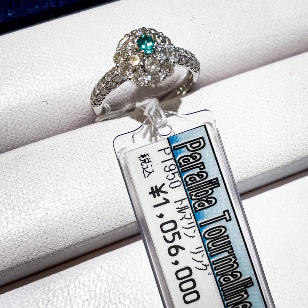 非加熱パライバトルマリンリング 2023年8月5日 by ijima 値札より50%OFFのコーナーから お勧めの品をご紹介いたします。 ブラジル産パライバトルマリン 0.09ct NoHeat(非加熱) 脇石ダイヤモンド 1.41ct ネオンブルーのパライバトルマリンで、非加熱。 値札から50%OFF 528,000円税込で販売致します。