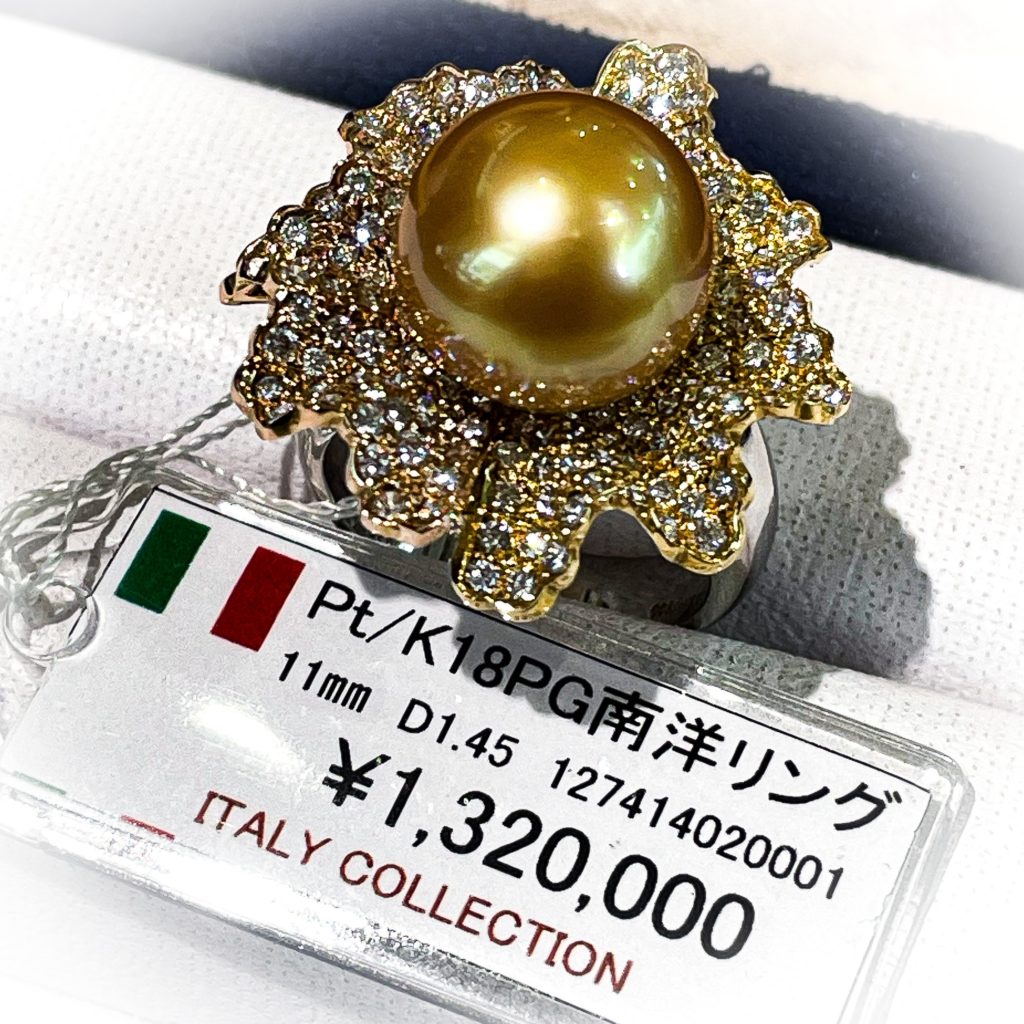 イタリー ゴールドパールリング 2023年9月19日 by ijima ゴールドパールは近年では手に入らない正に黄金に輝く最高色です。 メレを埋め込んだ地金は、不規則なデザインで中心の真円を強調しています。 国産では、なかなか無い、唯一無二の作品ですね。