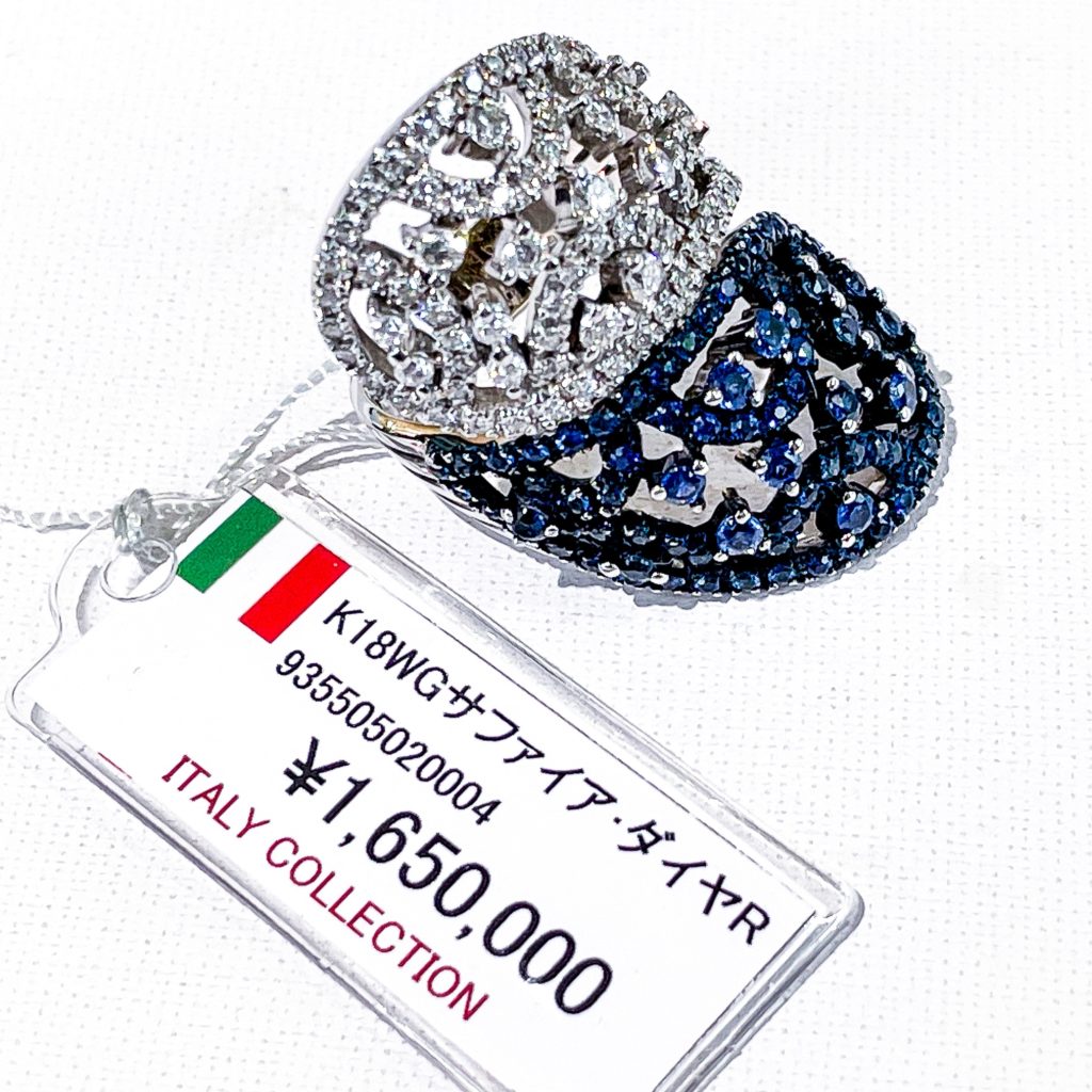 イタリー サファイヤリング 2023年9月21日 by ijima サファイヤとダイヤモンドのメレをふんだんに使用した豪華なリング。 場面も大きく、ずっしりとした風合いですが、幾何学的に隙間を作っているので、軽やかでモダンなイメージになります。 真似ても、なかなか作り切れないデザインです。