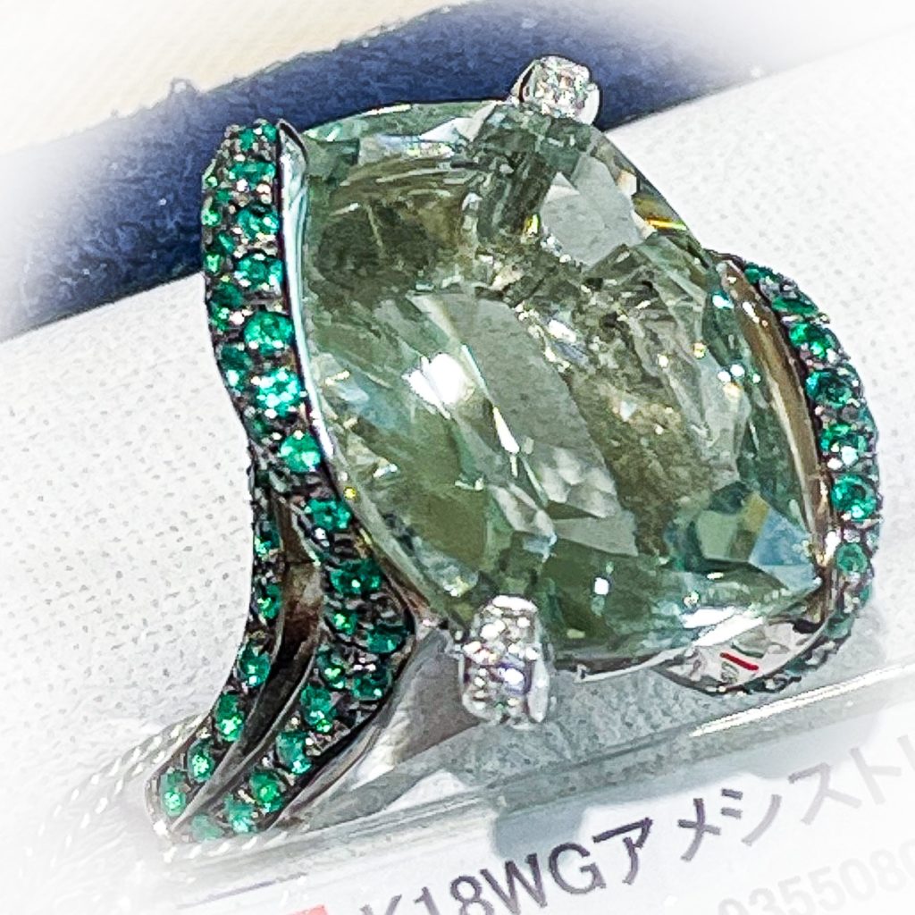 イタリー アメジストリング 2023年9月24日 by ijima グリーンに映るアメジスト。加熱処理を施される前のアメジストを天然そのままの色のまま使用した珍しいジュエリー。 取り合わせのエメラルドはザンビア産の明るい透明な石を埋め込んでいます。 グリーン一色のジュエリーは類を見ないので、最初は、「うん?」と感じましたが、指に装着してみると段々と馴染んできます。 不思議なジュエリーです。