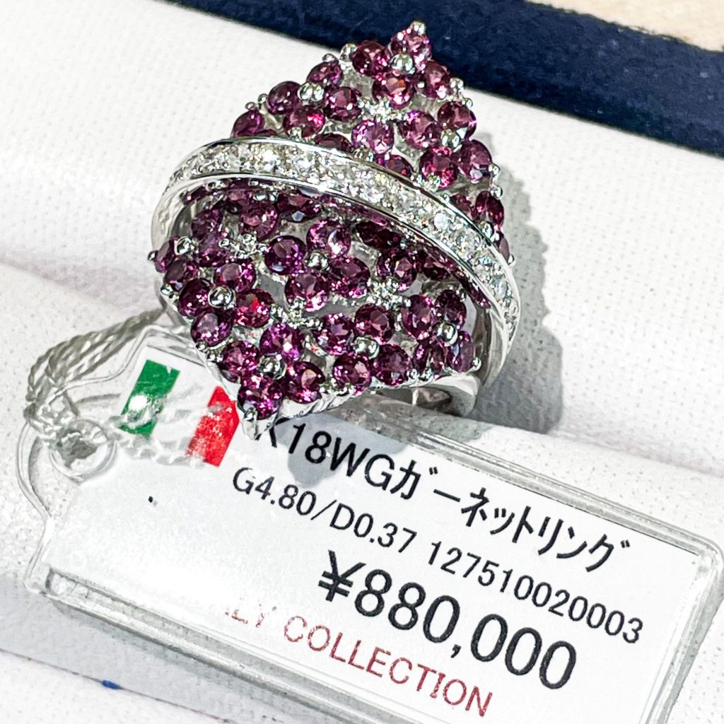 イタリー ガーネットリング 2023年9月22日 by ijima ルビーを使用せずにあえて、ガーネットを埋め込んでいます。 少しワイン系のロードライトガーネットは、大人の雰囲気を出す妖艶な色味です。 ダイヤモンドの一文字を上から重ねて高級感を上げていますね。 マニュキアも同色で合わせて使ってほしい。