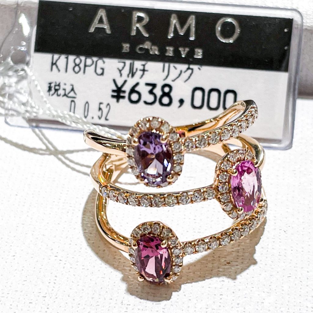 ARMO マルチリング 2023年10月5日 by ijima ARMO ECREVE RING フェミニンなピンク・パープル系とピンクゴールドを合わせた3連リング アメジスト・ロードライトガーネット・ピンクサファイヤと高価な色石を贅沢に使用しています。