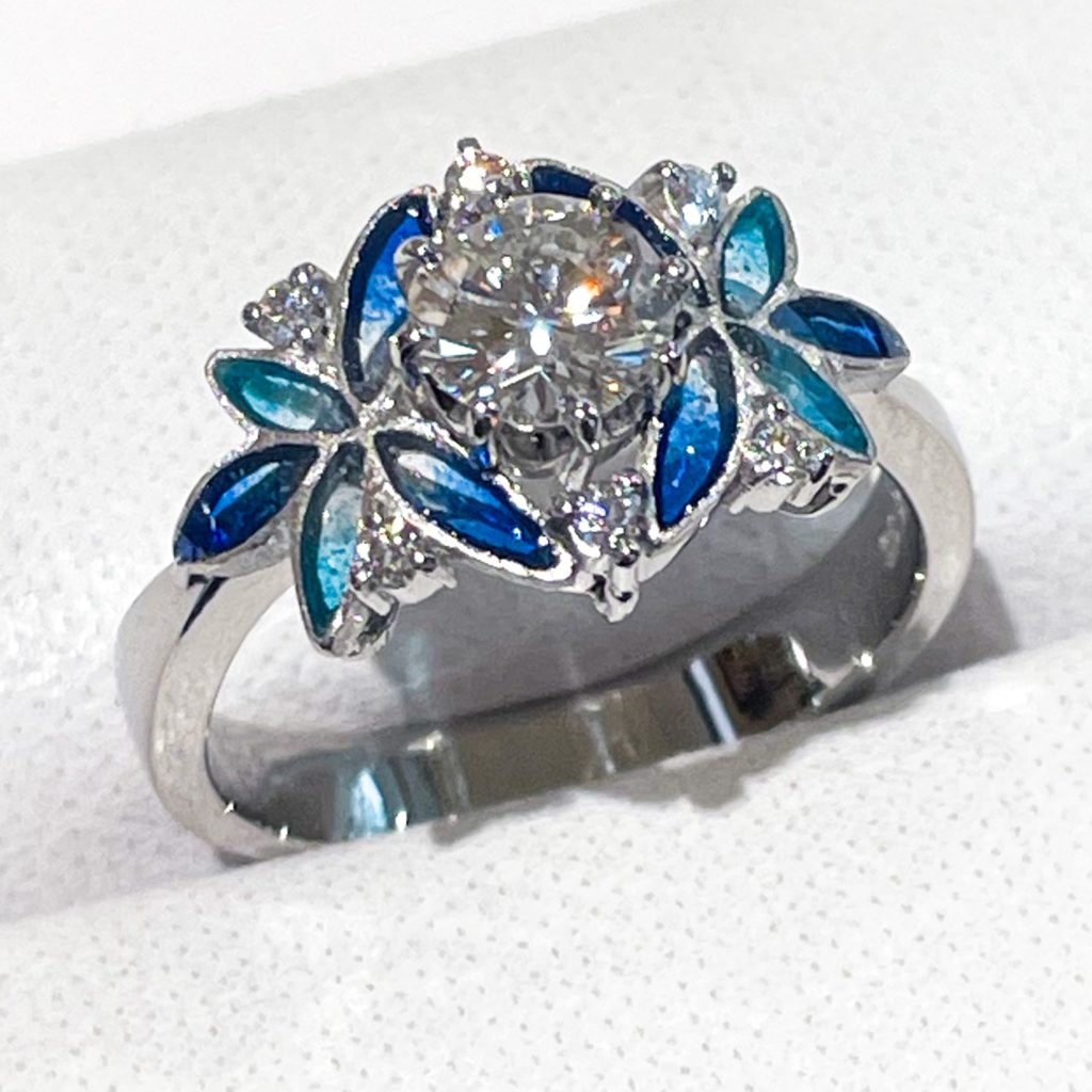 お客様のリフォーム 2023年10月17日 by ijima ダイヤモンドの立爪リングを中嶋邦夫先生にお願いして、ブルーアンシャンシリーズのプリクァジュール加工を施した素敵なリングに生まれ変わらせました。 中嶋邦夫先生、自らデザイン画を2枚描いていただき、お客様が選んだ図案からリフォームいたしました。 製作日数 50日