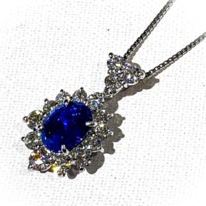 サファイアペンダント ノーヒート・スリランカ産 2023年11月6日 by ijima 中石 3.59ctの非加熱 スリランカ産のサファイヤです。 色味は、コーンフラワーのような美しく透明な青色。 王道のサファイヤです。 脇石ダイヤモンドは1.41ct