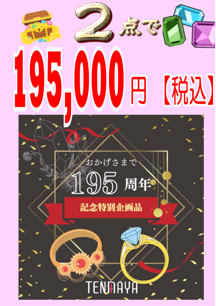 今日から195周年記念企画 2023年11月15日 by ijima 特別ケース内の商品 各285,000円前後の品を お好きな2点を選んでいただき、 なんと 税込 195,000円 の お祝い価格でご奉仕させていただきます。 数量に限りがございますので、お急ぎくださいませ。取置きなどは、できません。早いもの勝ちです。 お支払いは、現金、カード払いはもちろん、PayPay 、24回無金利ローンなど、いろいろご準備させていただきます。
