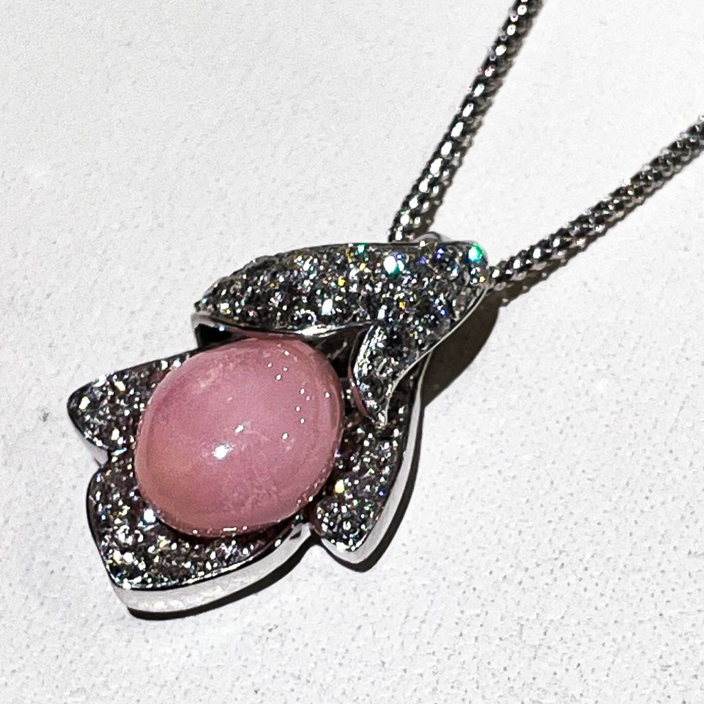 この作品の真珠は、5.76ctあり、小指の爪くらいの大きさがあります。