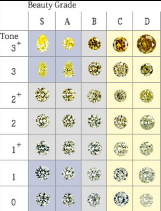 色の濃淡 2015年11月10日 by ijima 「色の濃淡」は色を表現するときに使用する「明度」のことです。カラーダイヤモンドであれば、黄色やピンク、ブルーの濃淡で、考えます。 色がつくとブリリアンシーは減少しますが、代わりに色という「美」が生まれます。個人差はありますが、どの色相においても、無色を「0」、黒色を「10」とし、判断します。 イエローダイヤを選ぶなら、2+以上 ピンクやブルーでは、2以上のものをお薦めします。
