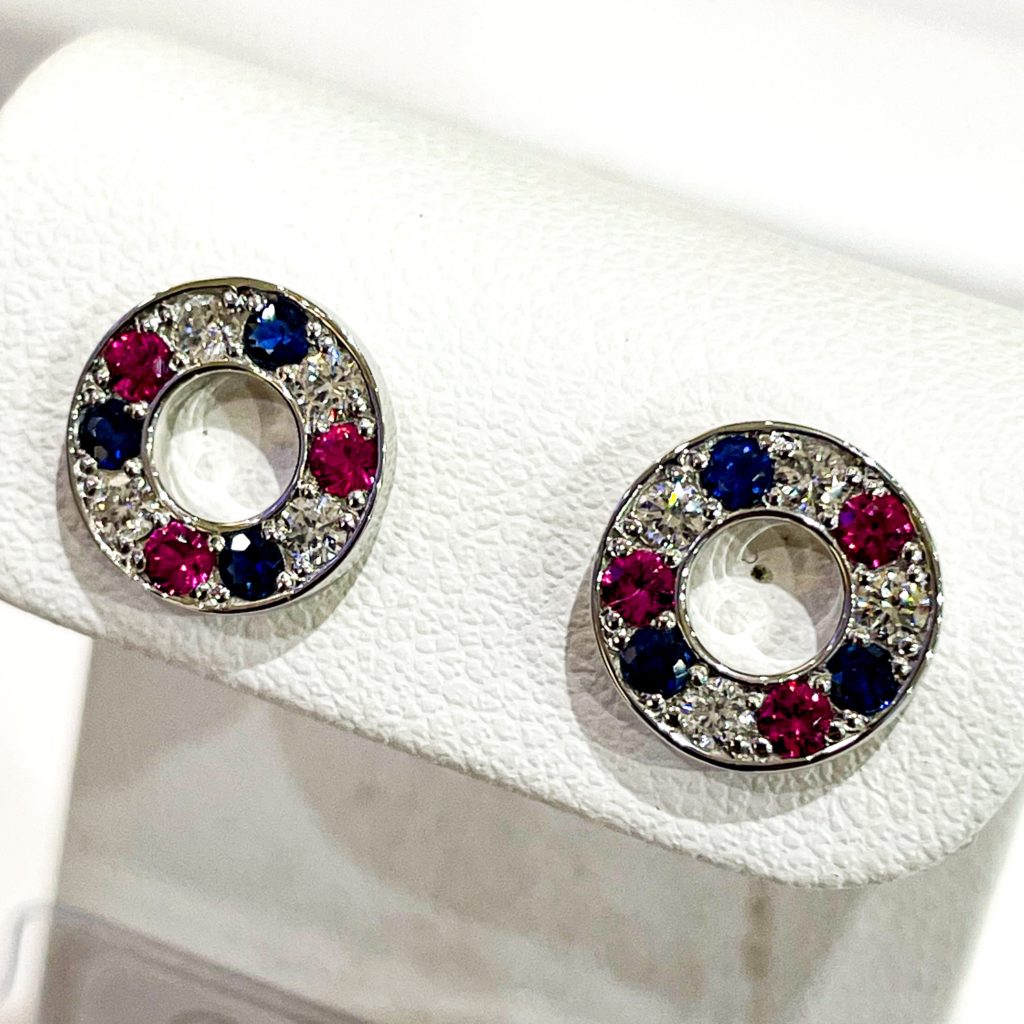 2点で195,000円企画品 ルビー・サファイアマルチ 2023年12月22日 by ijima 丸いデザインにサファイヤ・ルビー・ダイヤモンドを配置した可愛くて豪華な人気のデザインです。 ピアスとペンダントを一緒にお求めいただけるチャンスです。 特にピアスは人気商品なのでお早めにお求めください。 2点よりどり195,000円のコーナーからのご紹介です。 ペンダント 0.13ct 0.18ct 0.1701ct ピアス 0.13ct 0.13ct 0.10ct ×2