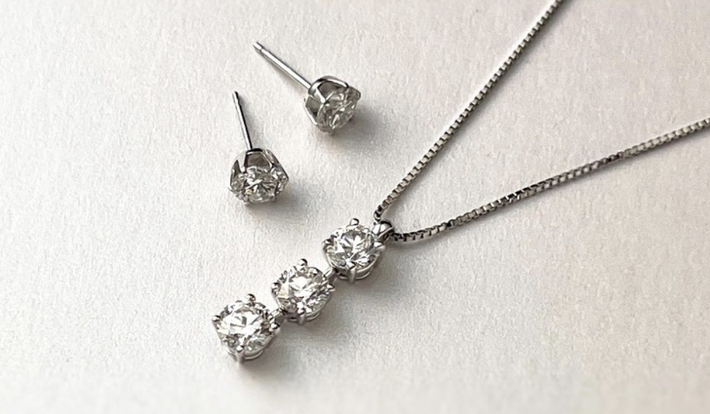 簡単なリフォーム 2024年4月6日 by ijima ダイヤの一文字型リング。半世紀前に大ヒットしたジュエリーで、その当時にお求めな方もたくさんいらっしゃるでしょう。 ダイヤモンドは、そのまま使用して、3個並びのペンダントとピアスに加工してみてはいかがでしょう。 一文字型リングはダイヤモンドの色や大きさを揃えていますので、このような加工が向いています。