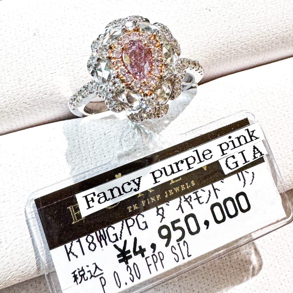 ファンシーパープルピンク、ローズカット巻き 2024年4月23日 by ijima 中石はファンシー・パープルニッシュ・ピンク この色区分は、紫が混入しているのでピンクが濃く観えます。 より解りやすいピンクをお探しの方に人気があり、品薄の希少品です。 0.30ctもピンクダイヤでは、まずまずのサイズ感。 周りの取巻きダイヤモンドもライトピンクダイヤモンドを使用しているので、サイズ感も大きく観えます。 取巻きのダイヤモンドはローズカットで高級感も気品もアップ。 500万円以下で購入できるのは、エクレブブランドのなせる業。