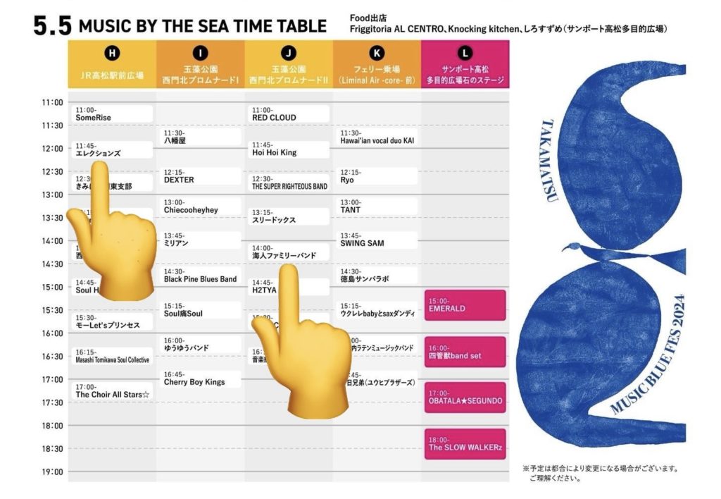 今日は2バンドで出演 2024年5月5日 by ijima 12:00〜 JR高松駅前広場「エレクションズ」 14:00〜 玉藻公園西門北プロムナードⅡ「海人ファミリーバンド」 以上の2箇所で演奏しますので、よろしくお願いします