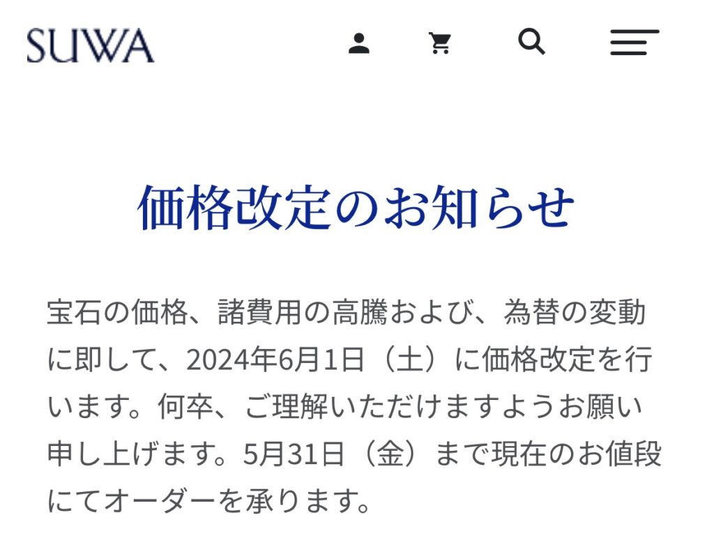 SUWA価格改定のお知らせ