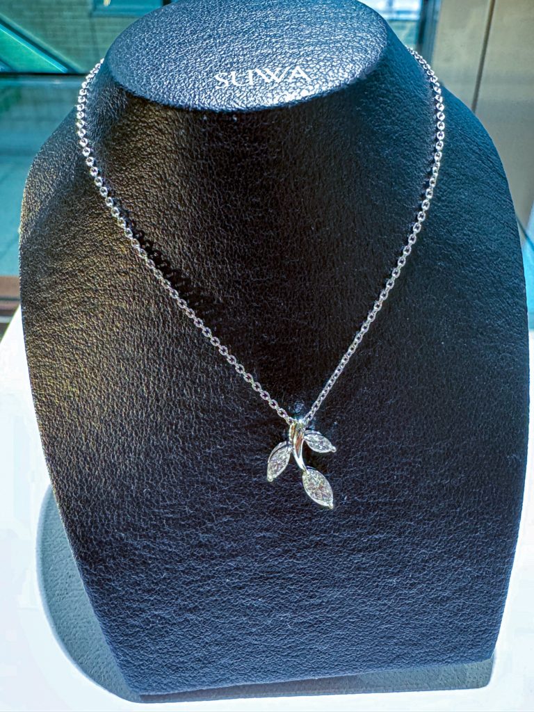 SUWA ダイヤモンドペンダント 2024年5月13日 by ijima Pt950 ダイヤモンドペンダント 0.45ct 方向を変えて配列されたマーキスカットの輪郭が際立ち、新緑の葉が伸びていく自然の美しさを表現したペンダント。 550,000円税込