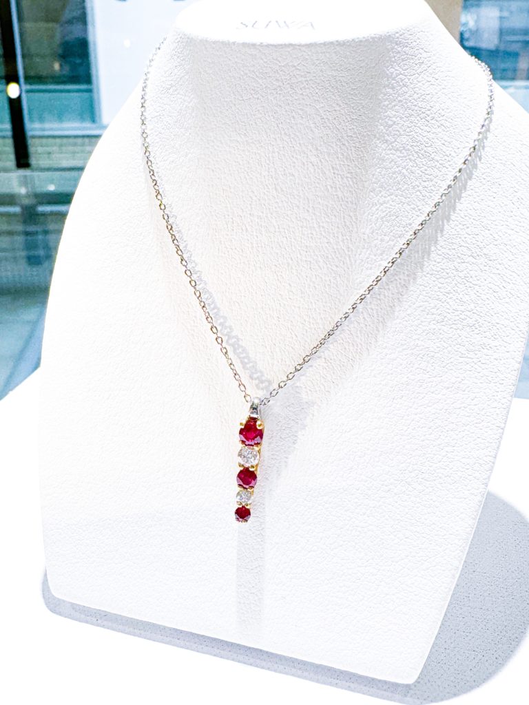 SUWA ルビーペンダント 2024年5月16日 by ijima Pt950 K18 ルビー・ダイヤモンドペンダント 0.35ct 0.16ct すでに廃盤になっている型です。 グラデーションした石の連鎖が、上から下へ美しい輝きの流れを作りだしています。エアセッティングにより サイドの空間からより多くの光を取り込み、強い輝きが引き出されます。 418,000円税込